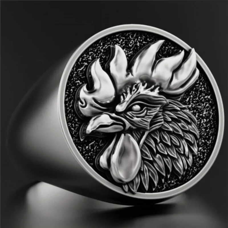 Мужское кольцо с головой петуха из нержавеющей стали