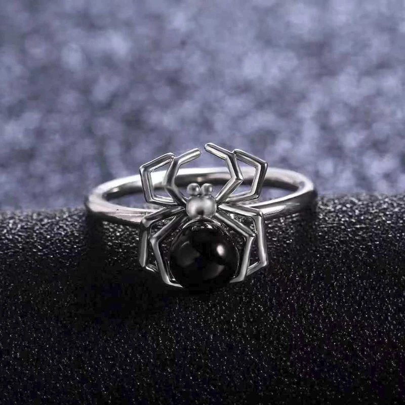 Креативное кольцо унисекс на палец с черным кристаллом в виде паука, серебряное кольцо для женщин и мужчин, женское Свадебное женское украшение на Хэллоуин, хип-хоп