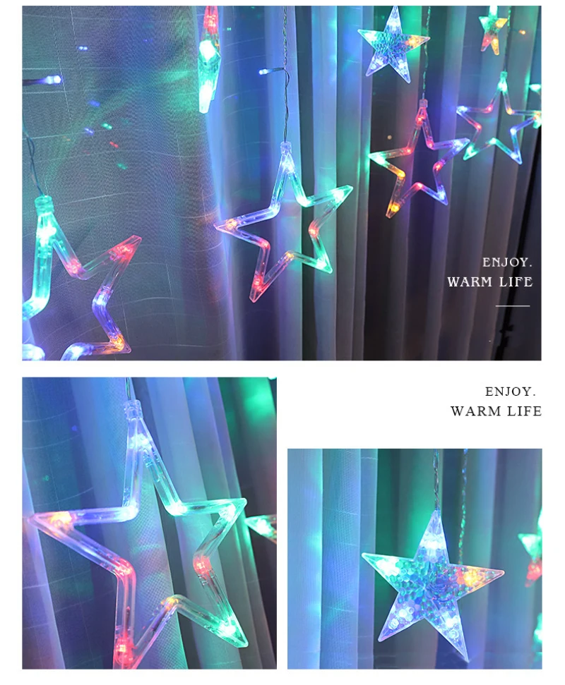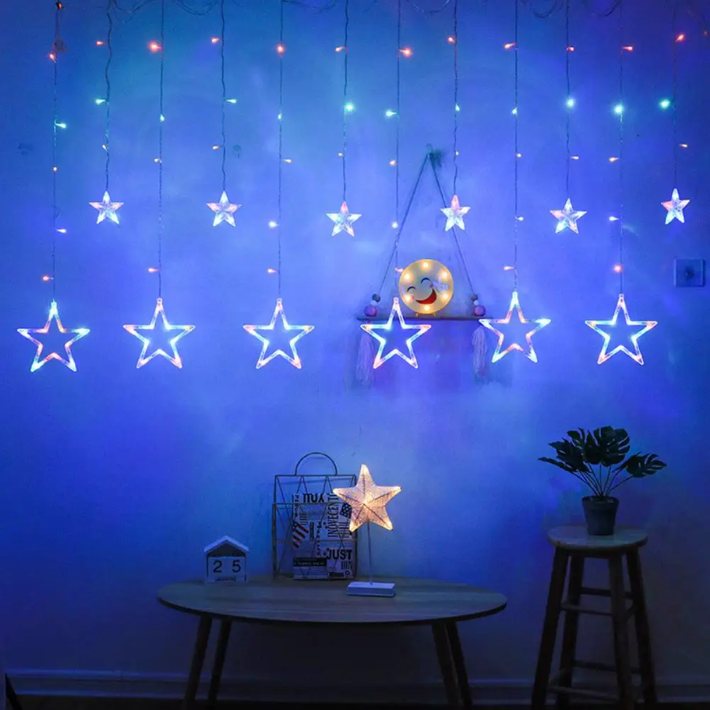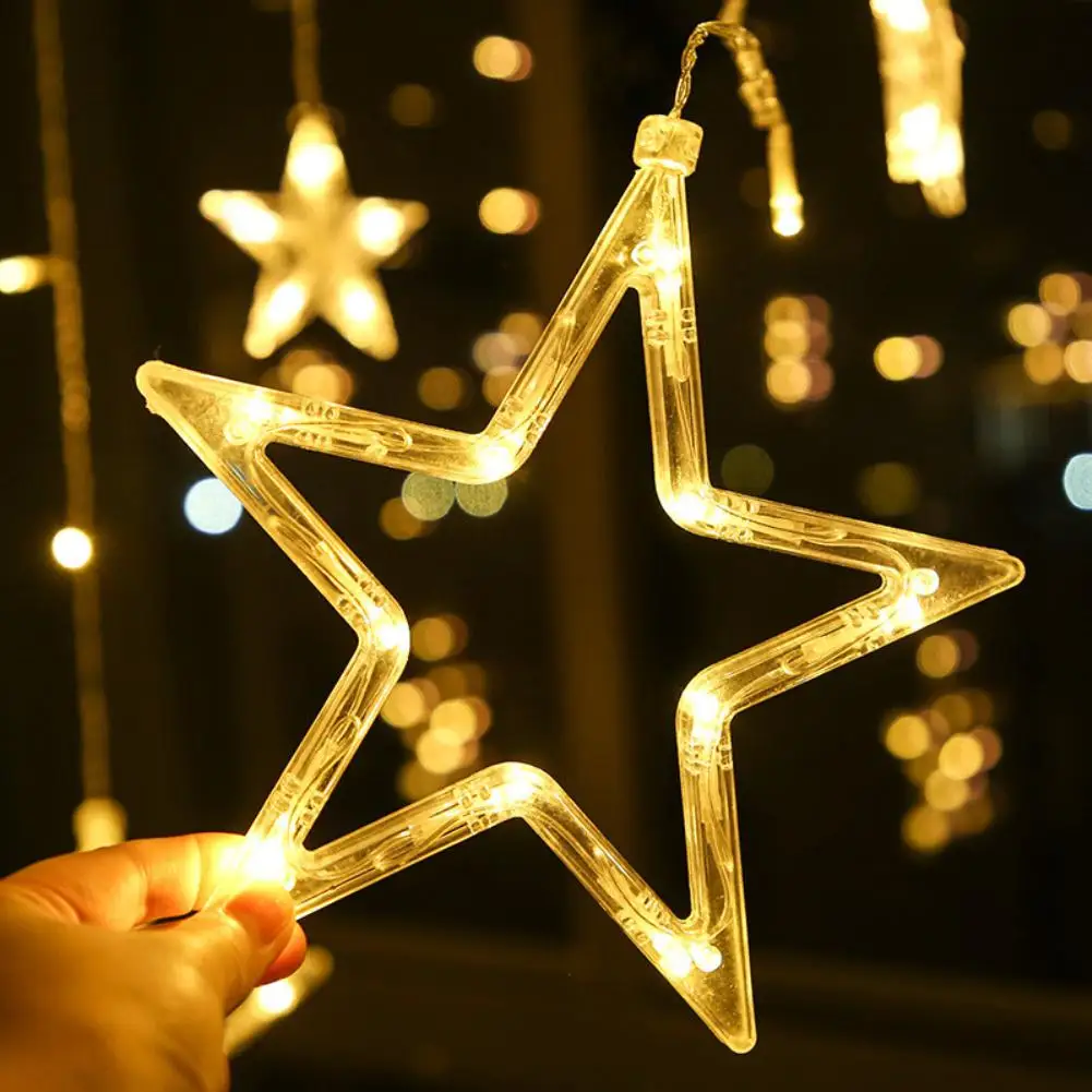 Рождественская светодиодная гирлянда-занавеска со звездами, уличное и комнатное освещение для спальни, дома вечерние НКИ, свадьбы, Рамадан, Декор