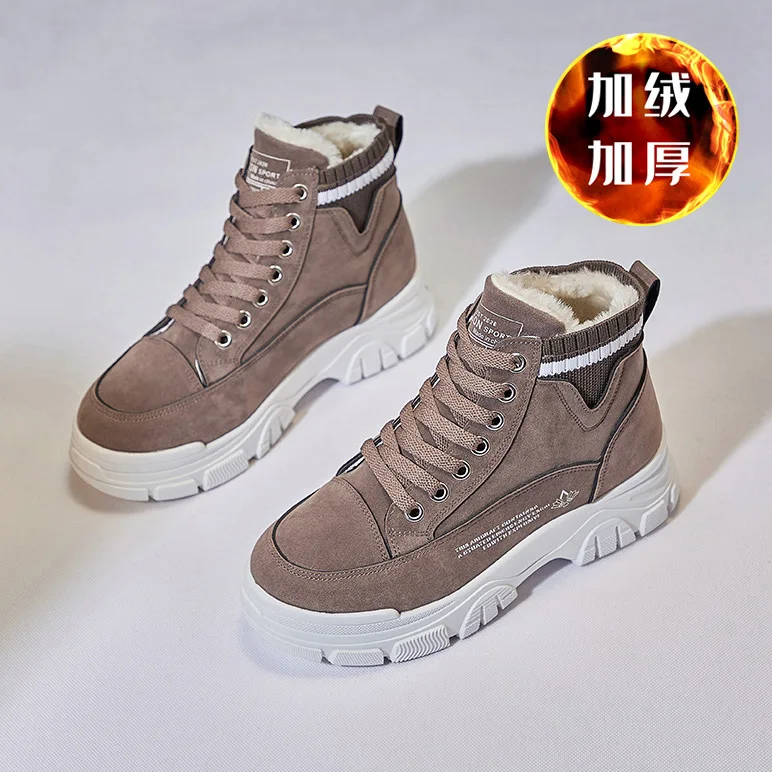 Женские ботинки из хлопка, зима 2021, бархатные универсальные теплые зимние ботинки на толстой подошве для студентов, женские ботинки из хлопка