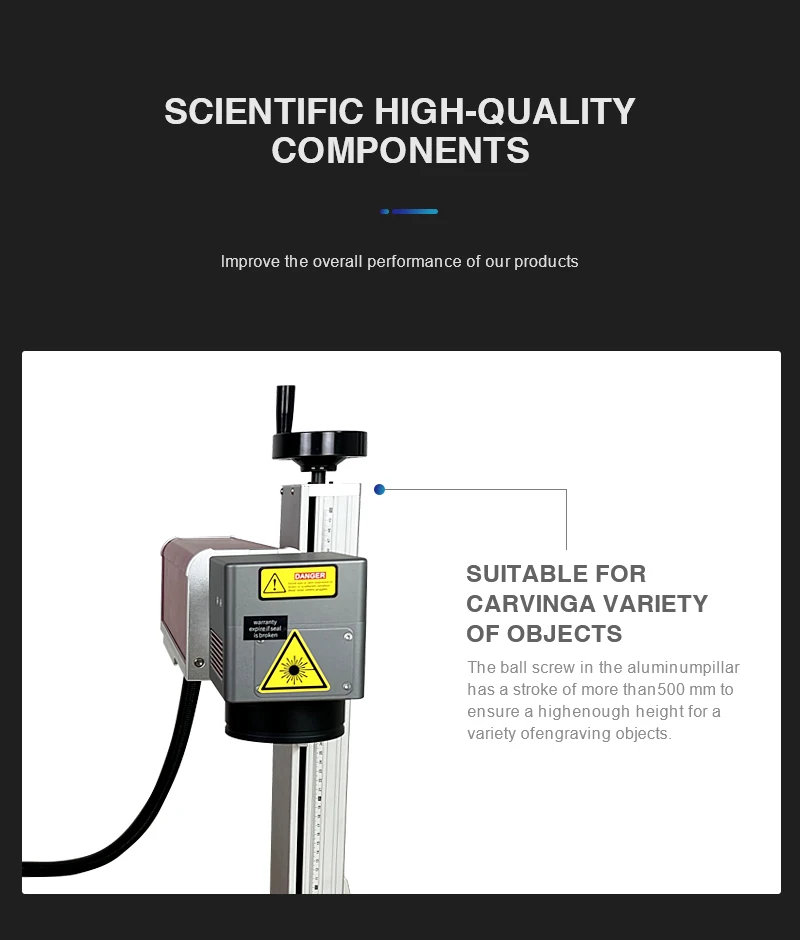 Шариковый винт в алюминиевой колонне имеет ход более 500 мм, чтобы обеспечить достаточно высокую высоту для различных объектов гравировки. Lmдоказательство общей производительности нашей продукции. Подходит для различных предметов carvinga.