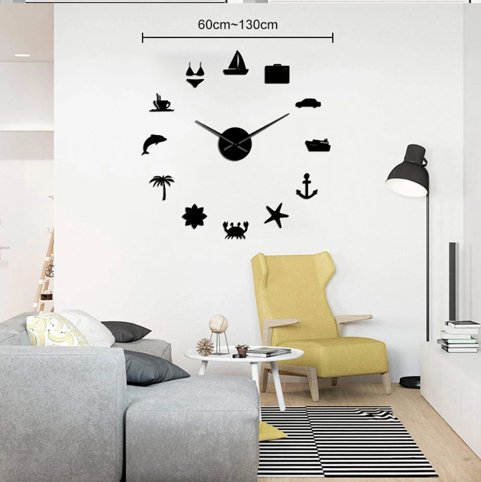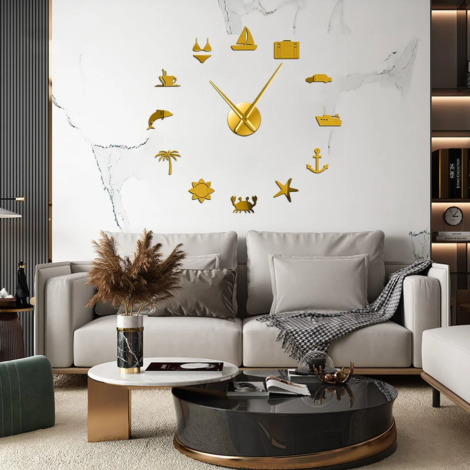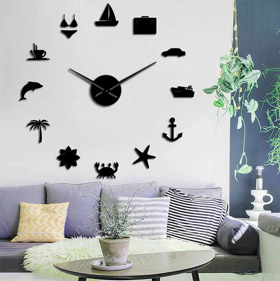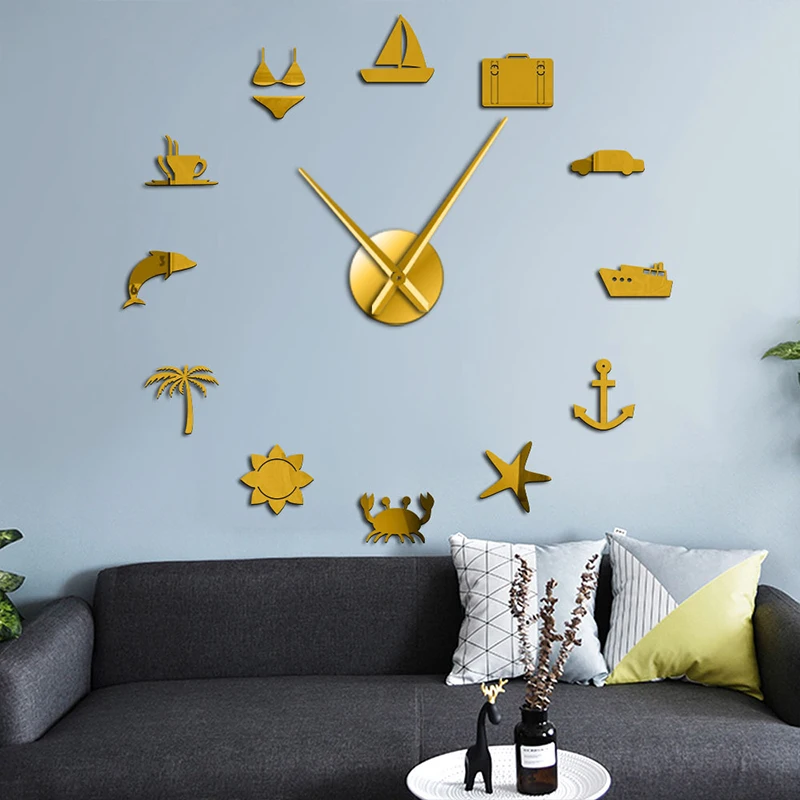Часы настенные большого размера, 3D зеркальные наклейки для летних каникул, Гаваи, декор сделай сам для дома, гостиной