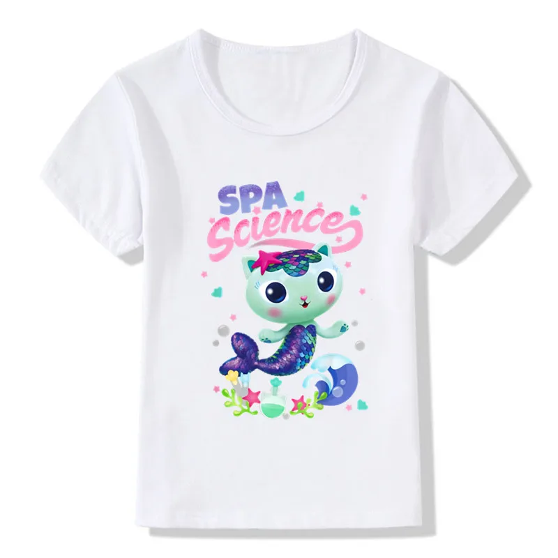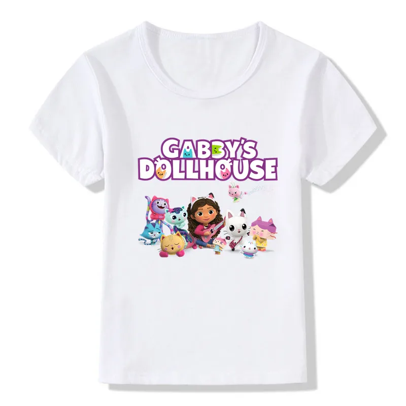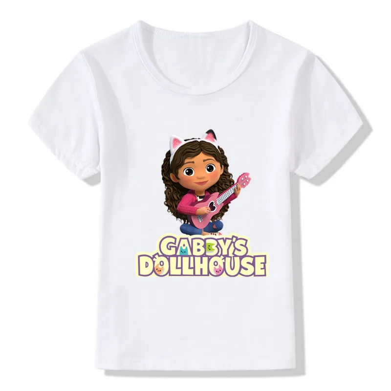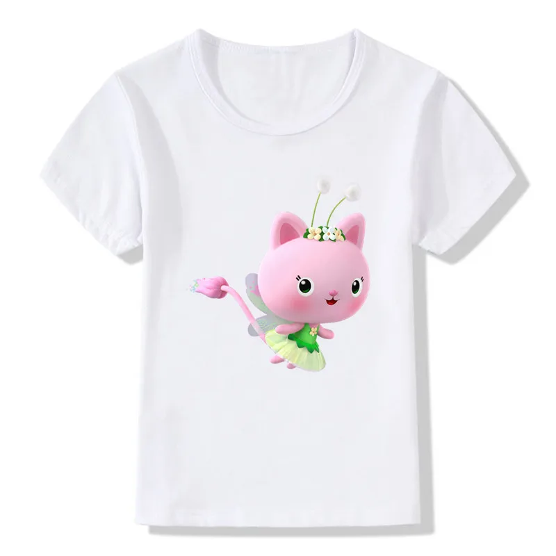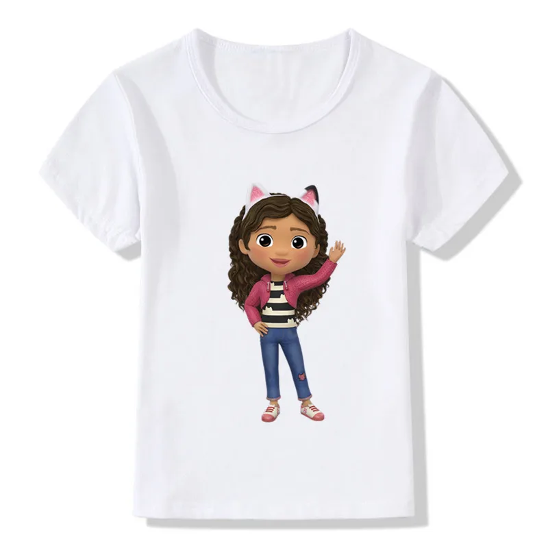 Kawaii футболки для девочек Cute Gabbys кукольный домик с мультяшным принтом детская футболка летние модные футболки Одежда для девочек Белая кофта Топы