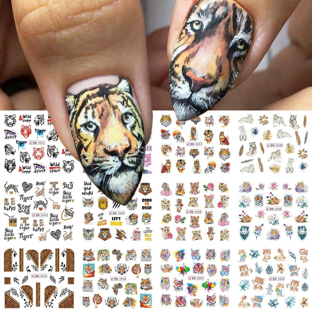 Символ года 2022, год тигра, тигр наклейки для ногтей, животные принты, водные наклейки на ногти тигра, водные слайдеры для ногтей тигра, наклейки новогодние, все для маникюра