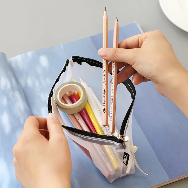 Прозрачный чехол, Сетчатая Сумка для хранения карандашей для детей, подарок для девочек, офисные товары, нейлоновый чехол на молнии для карандашей