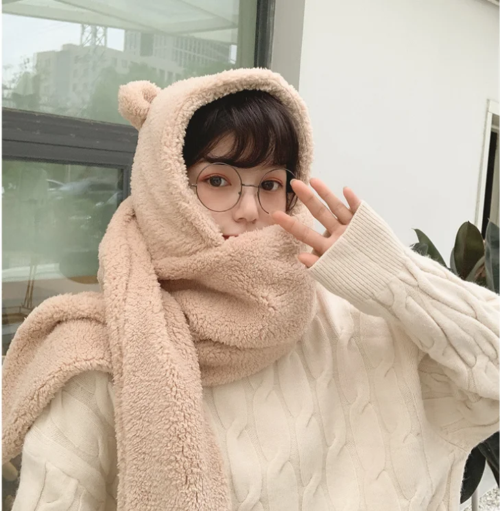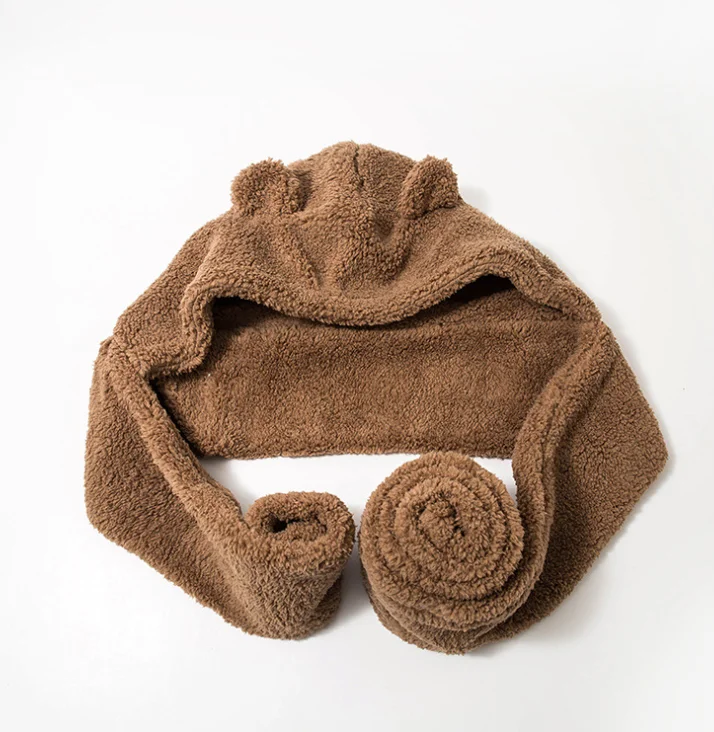 Медвежья шапка шарф все в одном Симпатичная зимняя двухслойная тепл...