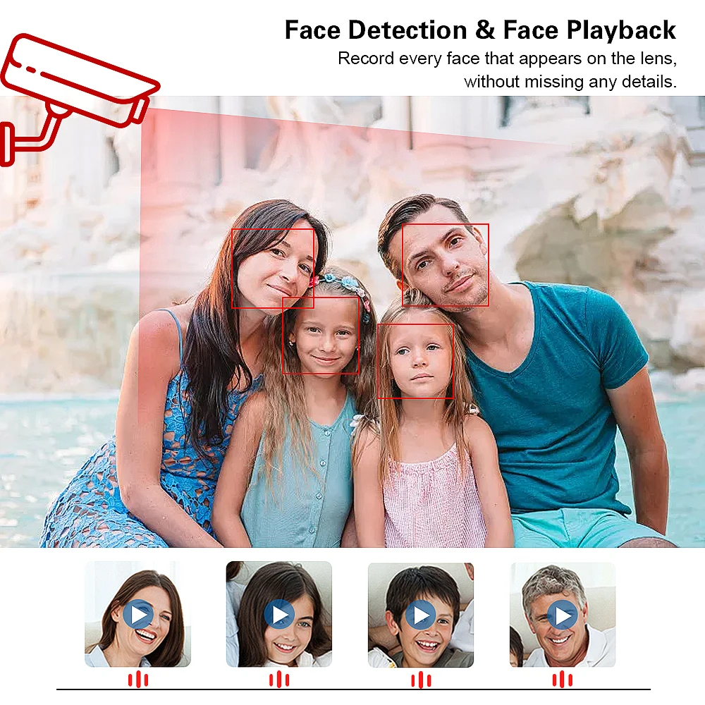 Распознавание лица, воспроизведение лица и запись лица; Обнаружение лица и воспроизведение лица; Быстрое снятие изображений лица и быстрое воспроизведение видео лица; Распознавание лица: автоматическое снятие изображений лица; Воспроизведение лица: интеллектуальное воспроизведение видео, экономит время, не упускает все детали.