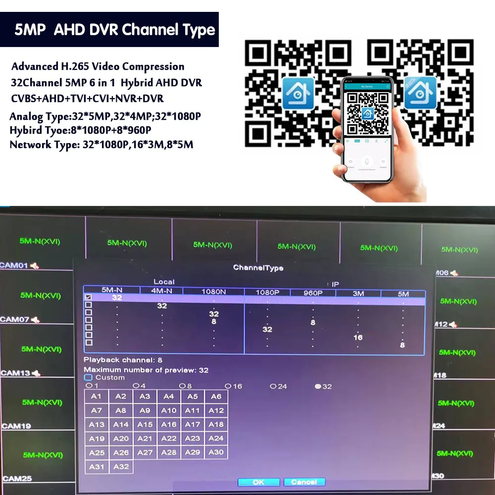5MP 32CH DVR видеорегистратор распознавание лица XMEYE цифровой видеонаблюдение видеорегистратор 16 каналов AHD 6 в 1 Гибридный DVR NVR