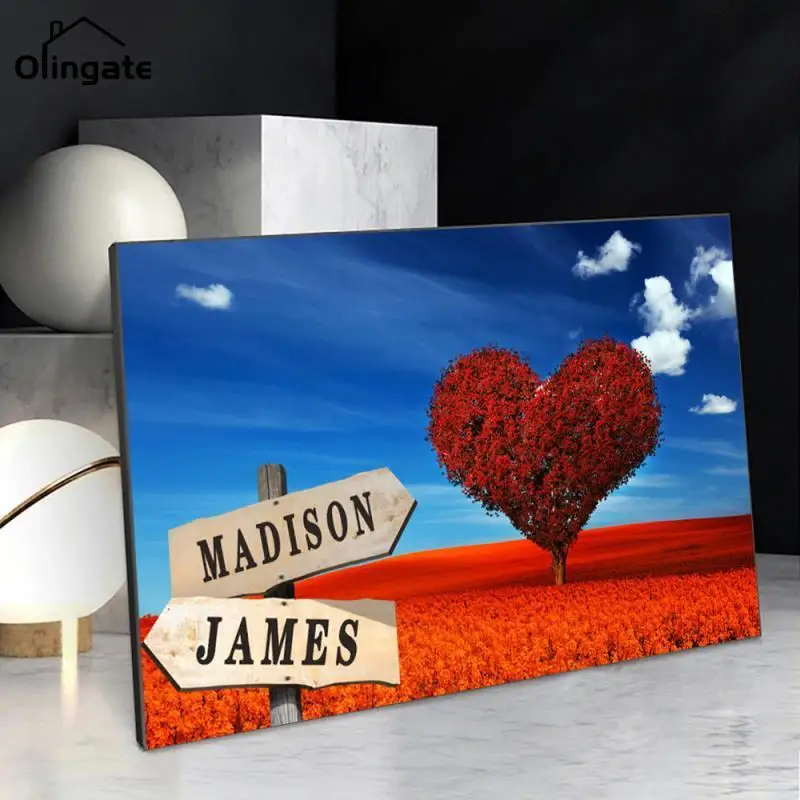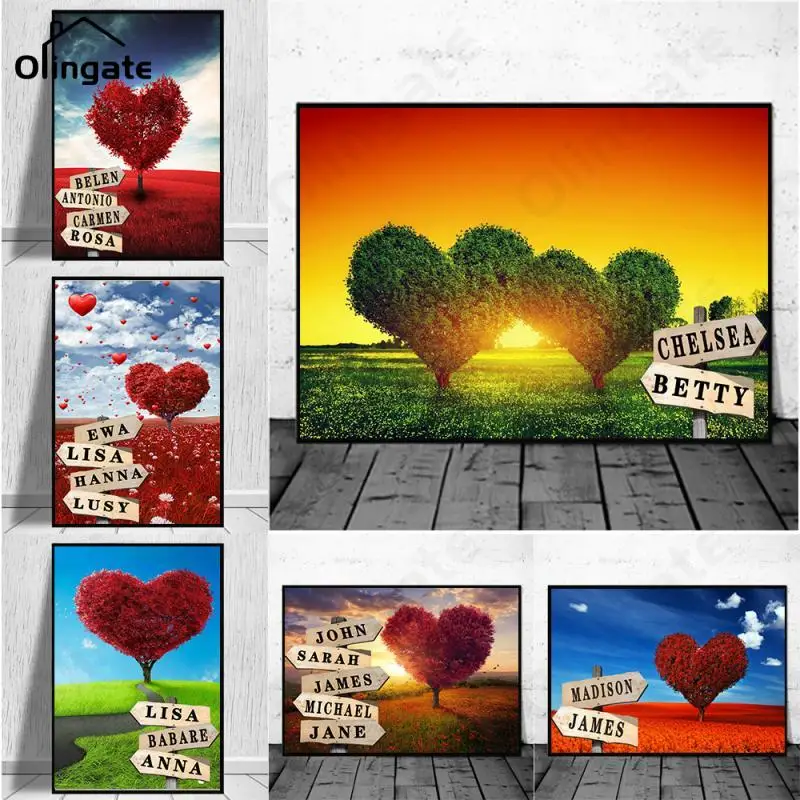 Настенная картина с именем на заказ, холст с изображением сердца, дерева, даты рождения, дороги, плакаты, печать для пар, Подарки Для Семьи, домашний декор
