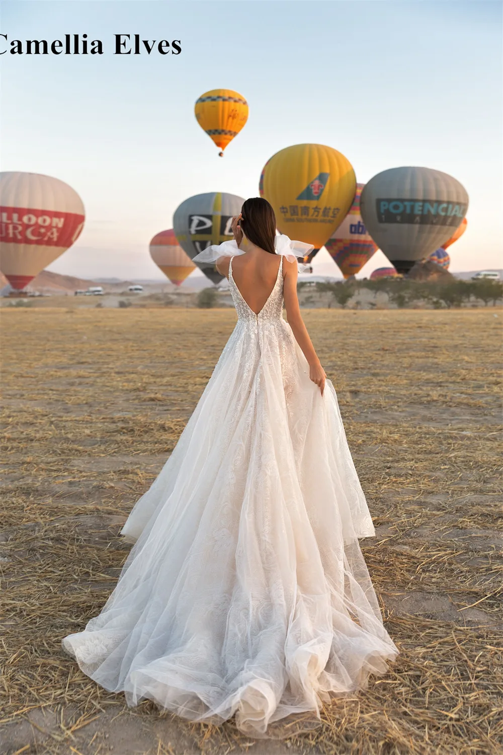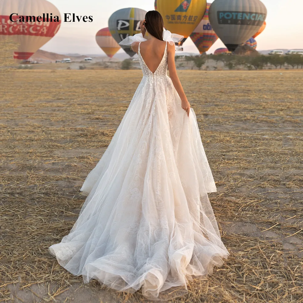 Платье свадебное кружевное ТРАПЕЦИЕВИДНОЕ на тонких бретельках с открытой спиной