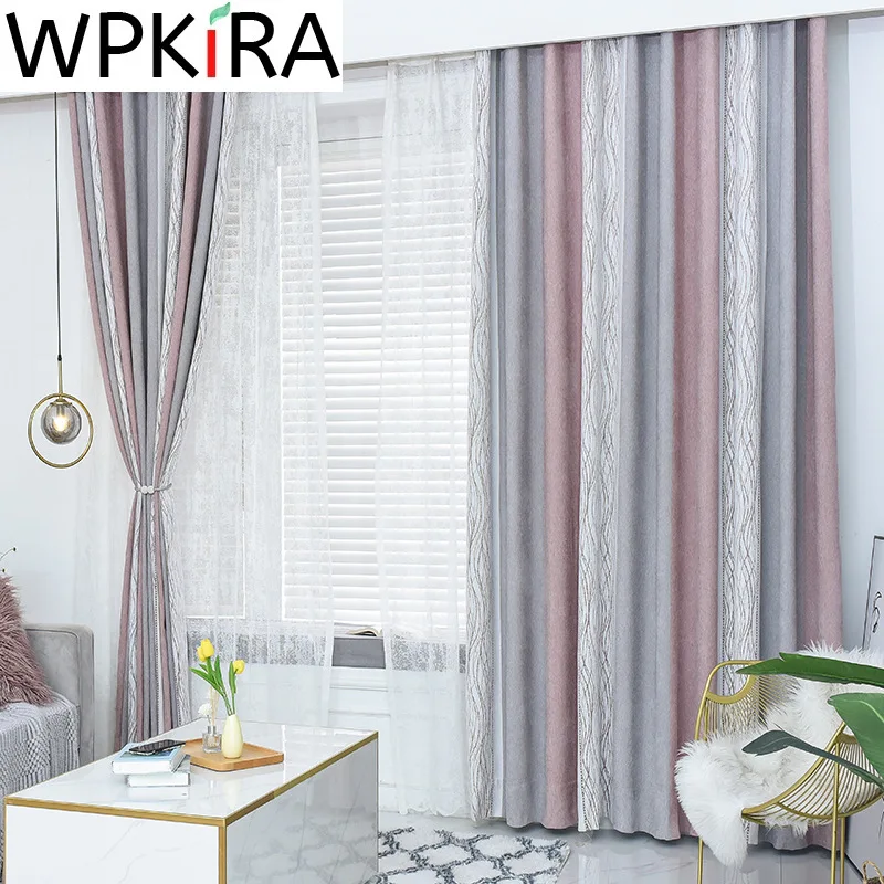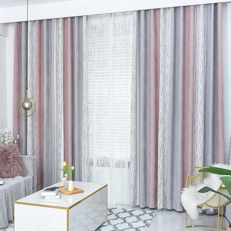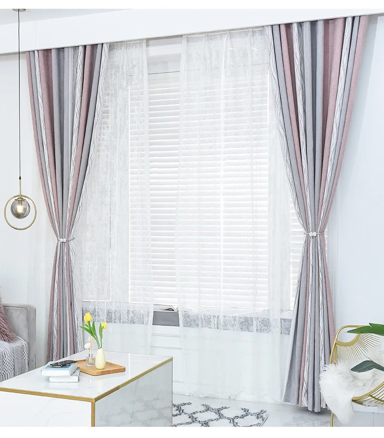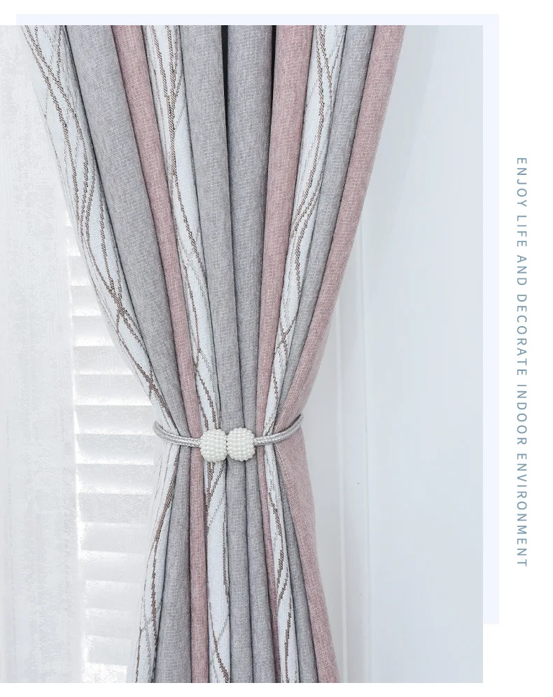 Morandi розово-серая полосатая занавеска для девочек, шениль для спальни, теплоизоляция и затенение, Геометрические жаккардовые Оконные Занавески