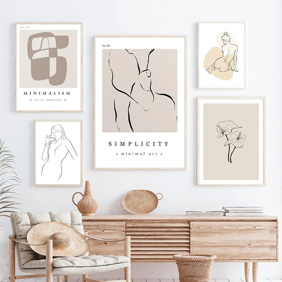 Абстрактная линия девушка книга для пар Минималистичная настенная ж...