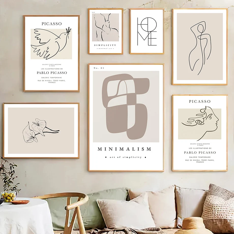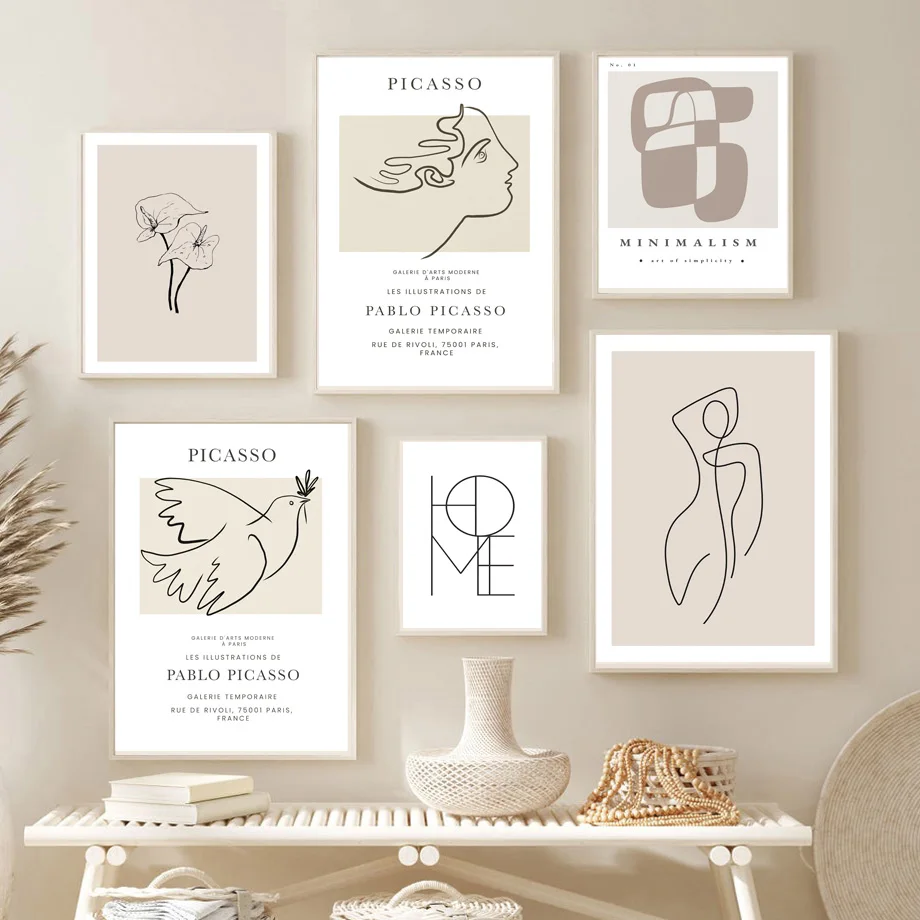 Абстрактный Матисс линия лица листья цветок настенная живопись холс...