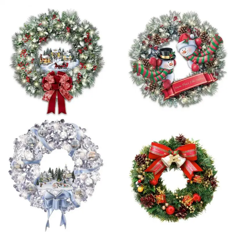 Рождественский венок с Санта-Клаусом, строительная гирлянда, подвесные украшения для входной двери, настенные украшения, Рождественский венок на елку