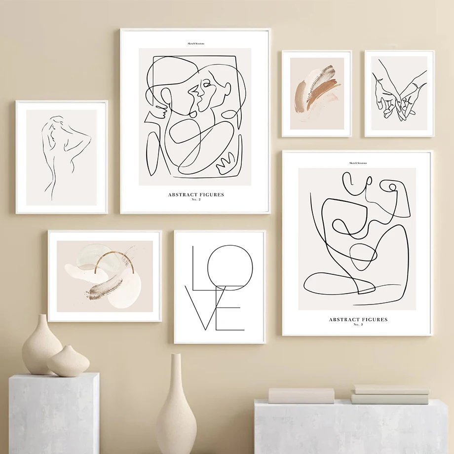 Абстрактные Фигурки линия девушка любовник руки стены искусства холст картина скандинавские плакаты и принты настенные картинки для декора гостиной