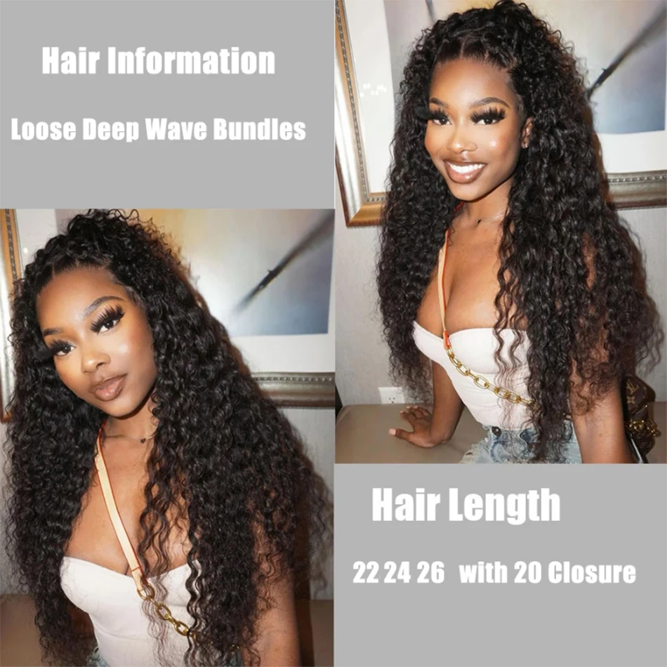 Human Hair TypePeruvian Deep Wave Bundles with Clocure