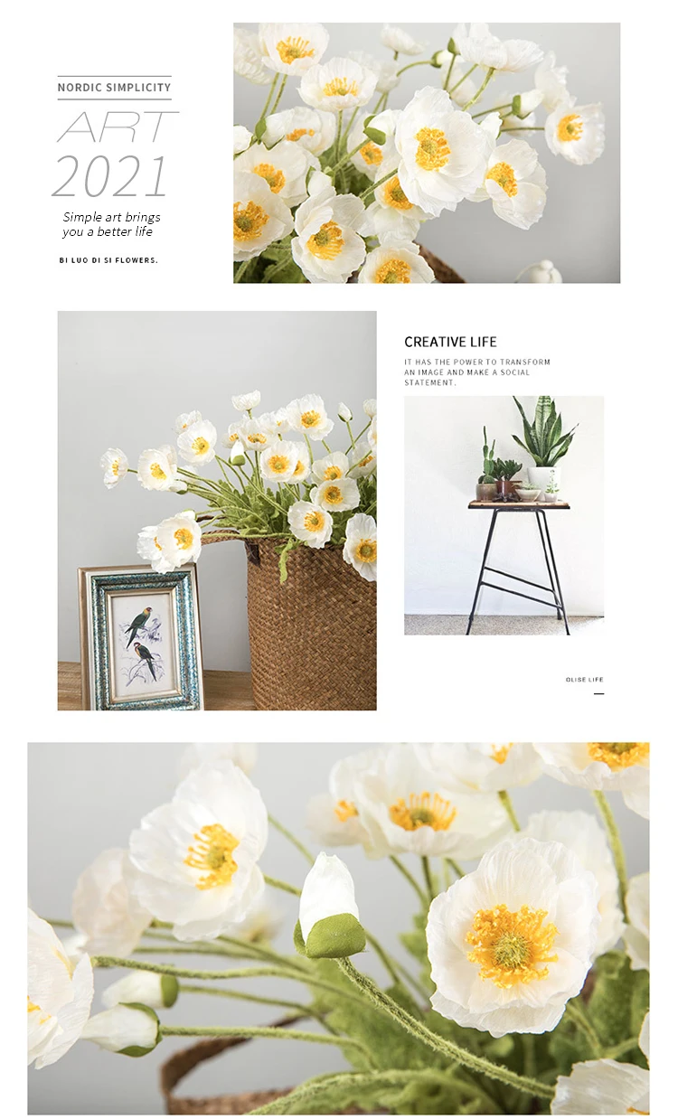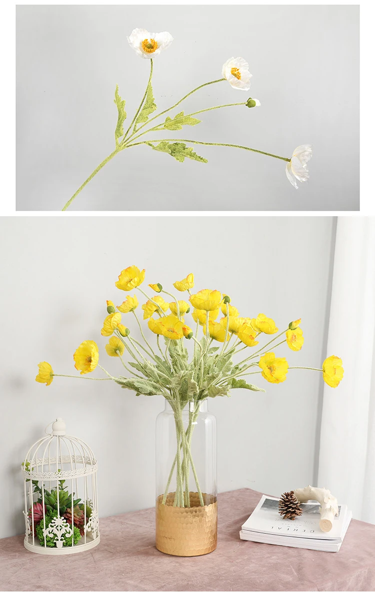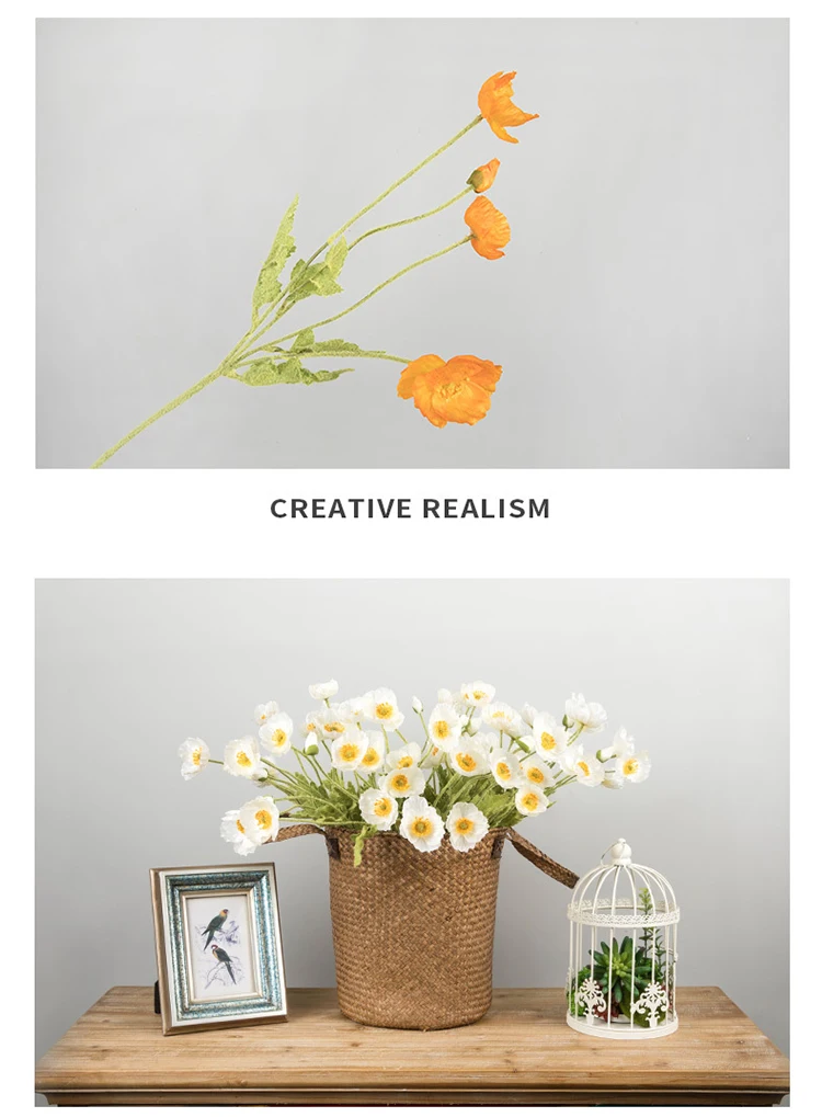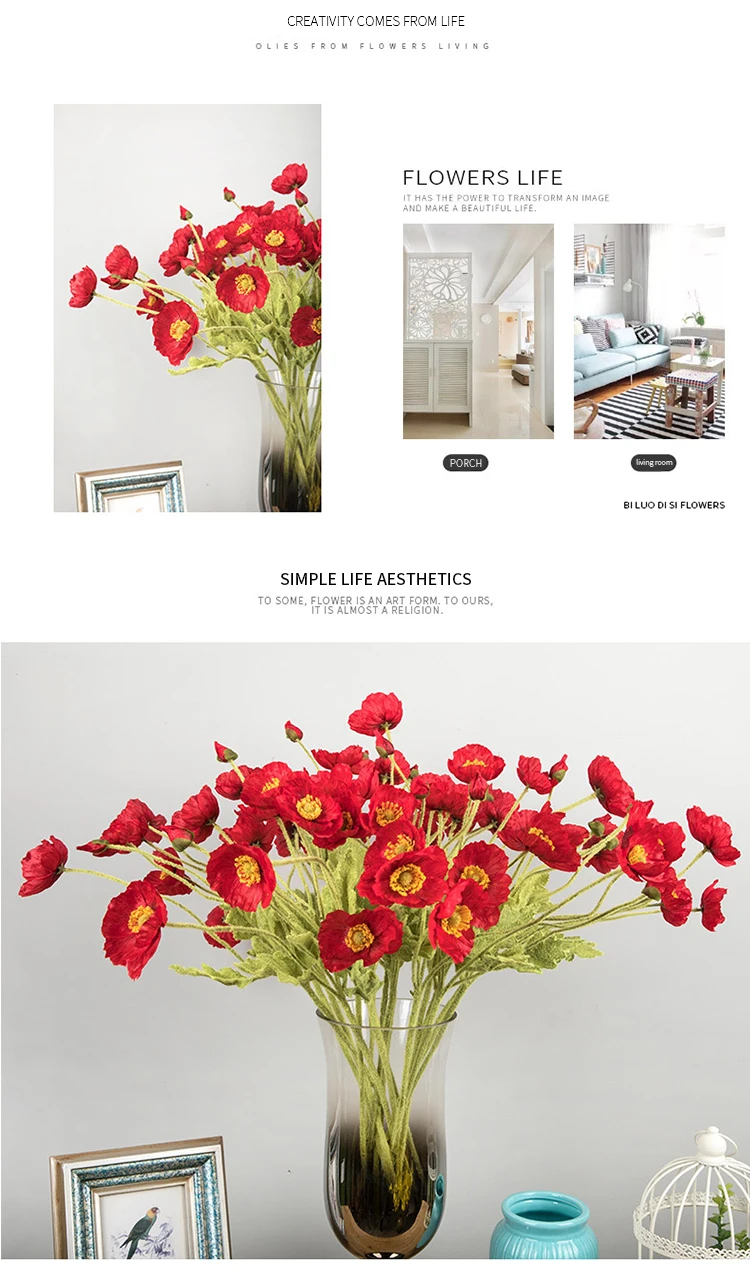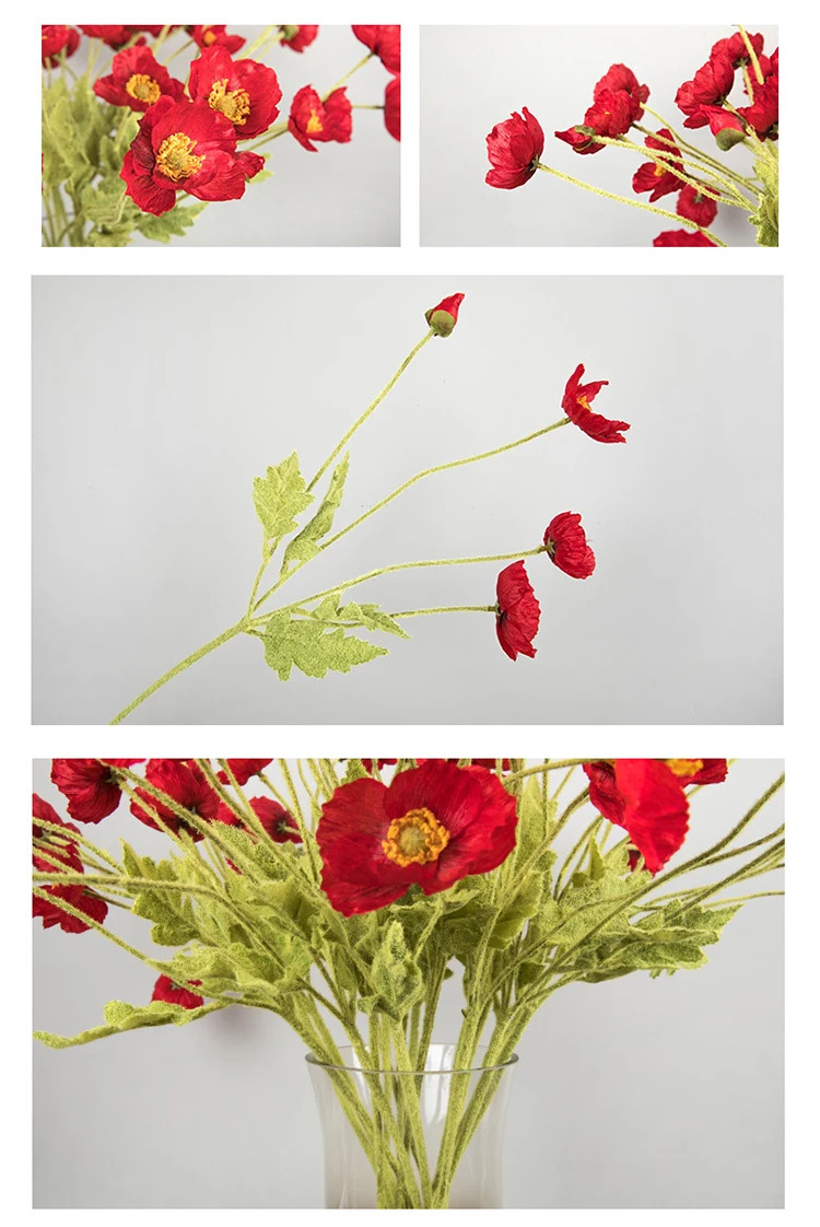 4 цветкаветка макового мака с листьями, искусственный цветок, цветы для домашвечерние, декор для стола, искусственные цветы