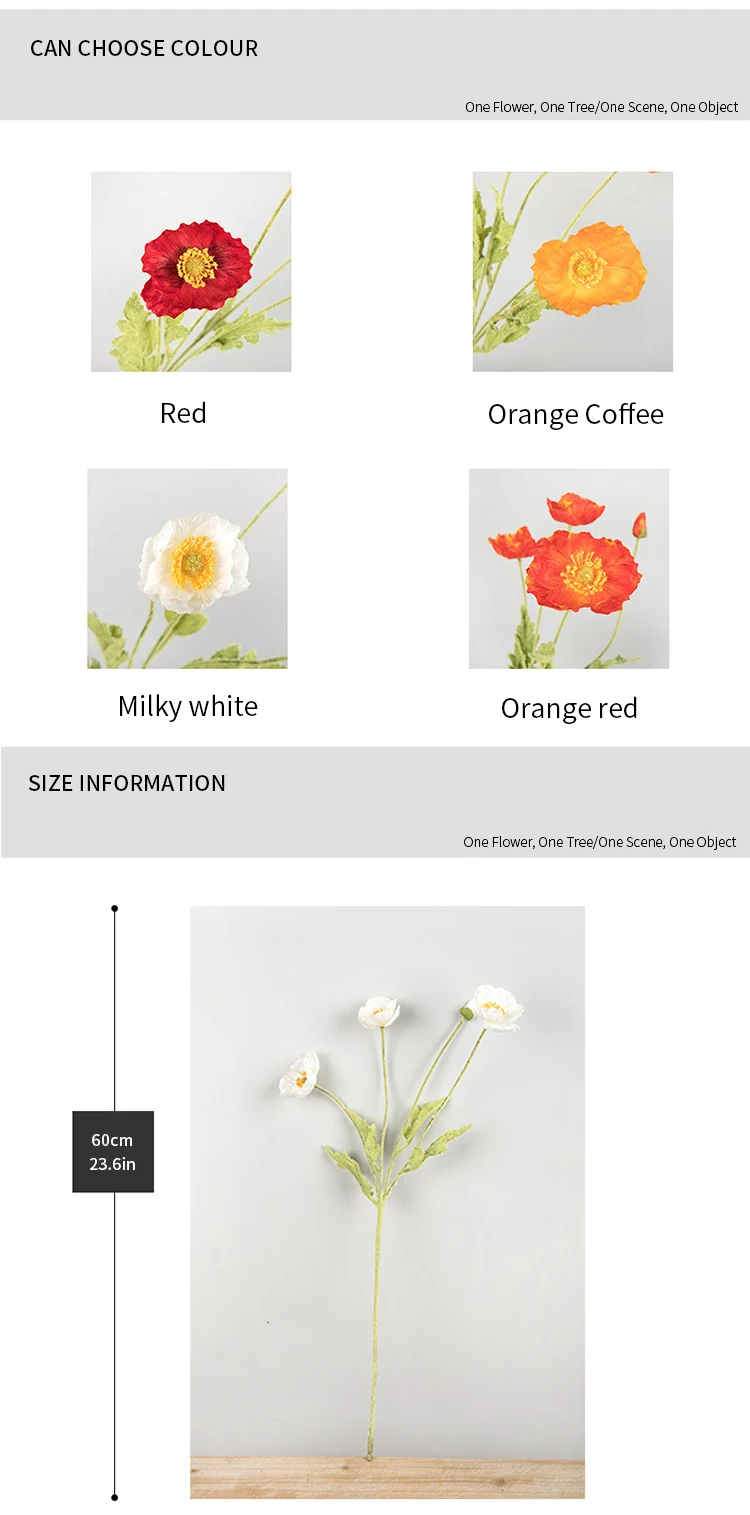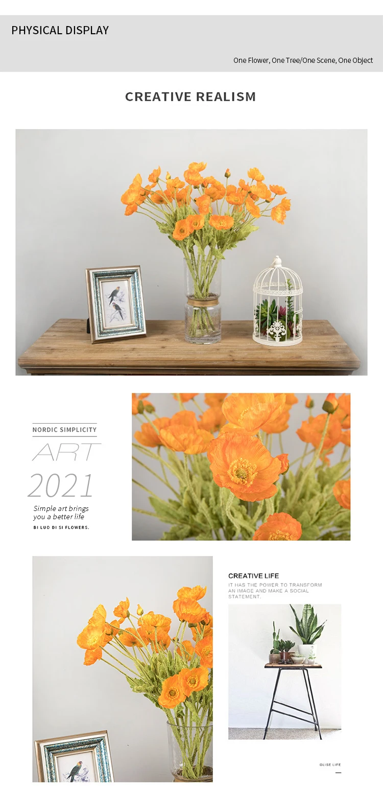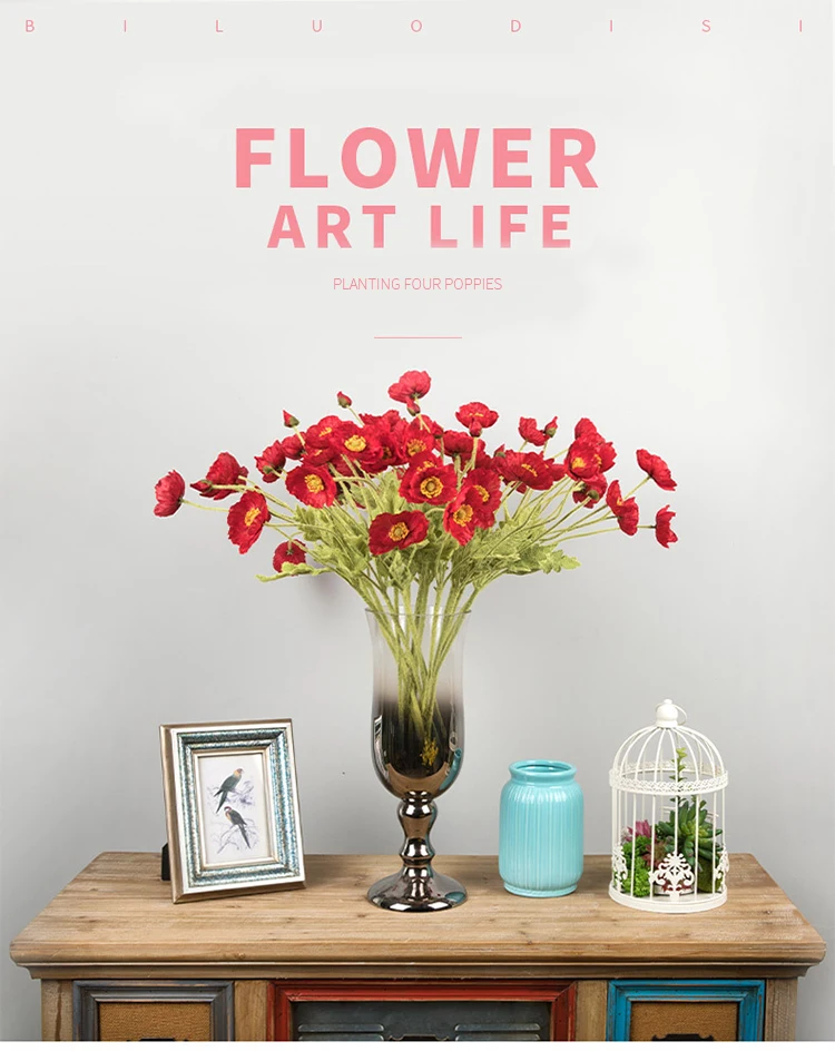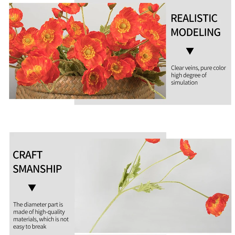4 цветкаветка макового мака с листьями, искусственный цветок, цветы для домашвечерние, декор для стола, искусственные цветы