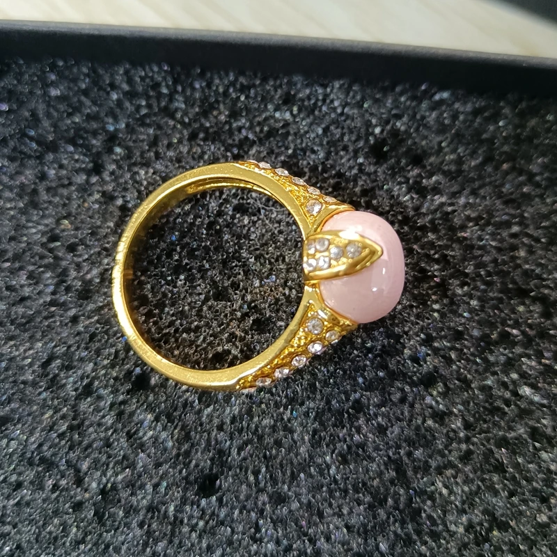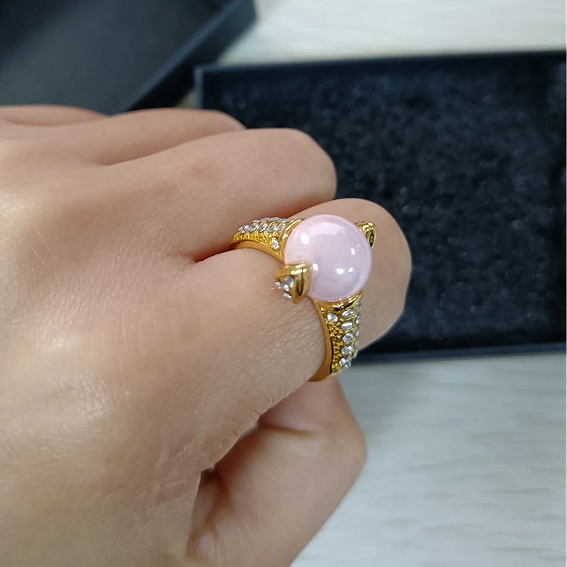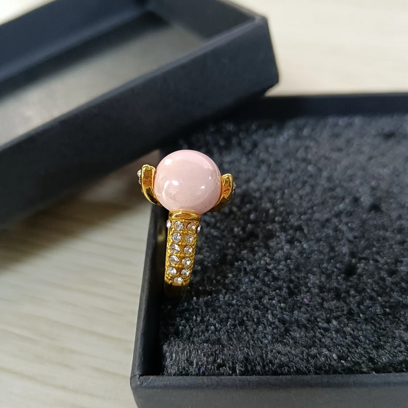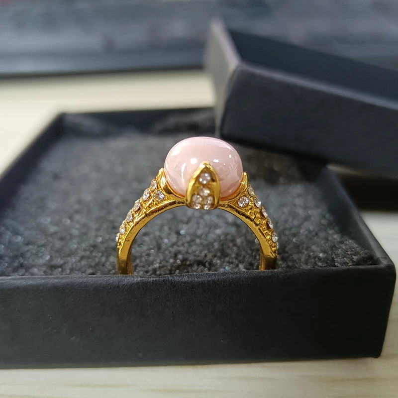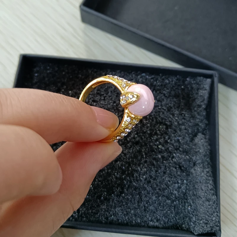 Кольца золотого цвета для женщин, большое кольцо с розовым коралловым камнем и белым цирконом, рождественский подарок, женская мода, бижутерия для вечеринки, оптовая продажа
