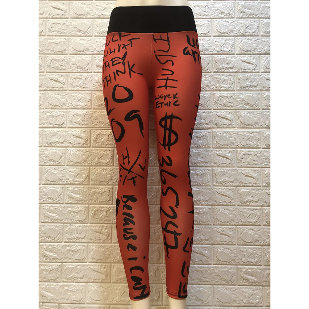 Леггинсы женские, эластичные, с высокой талией, с буквенным принтом