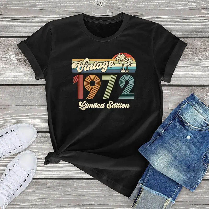100% хлопок, винтажная коллекция 1972, топы для 49 дней рождения, ограниченная серия, унисекс, футболка для 49 лет, женская футболка оверсайз с графическим рисунком