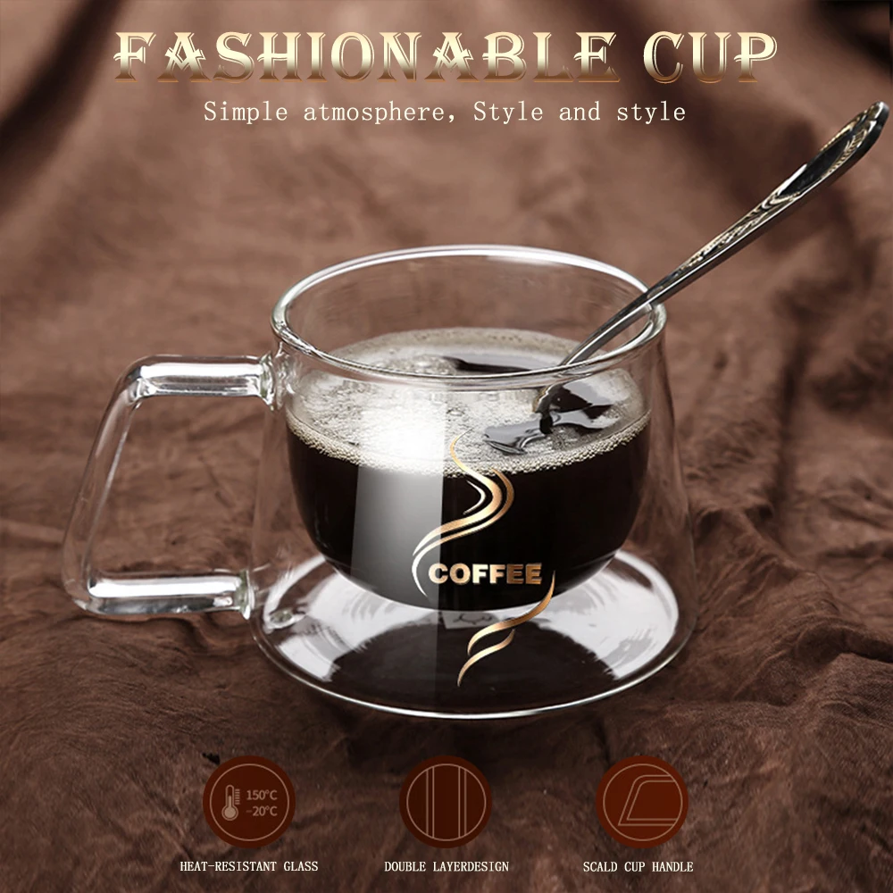 1. Креативный дизайн с двумя стенками: двойное стекло и ручки облегчают чашку, не беспокоясь о ожогах, классические и элегантные, высококачественные кофейные чашки, позволяет вам наслаждаться приятным опытом хорошего времени;