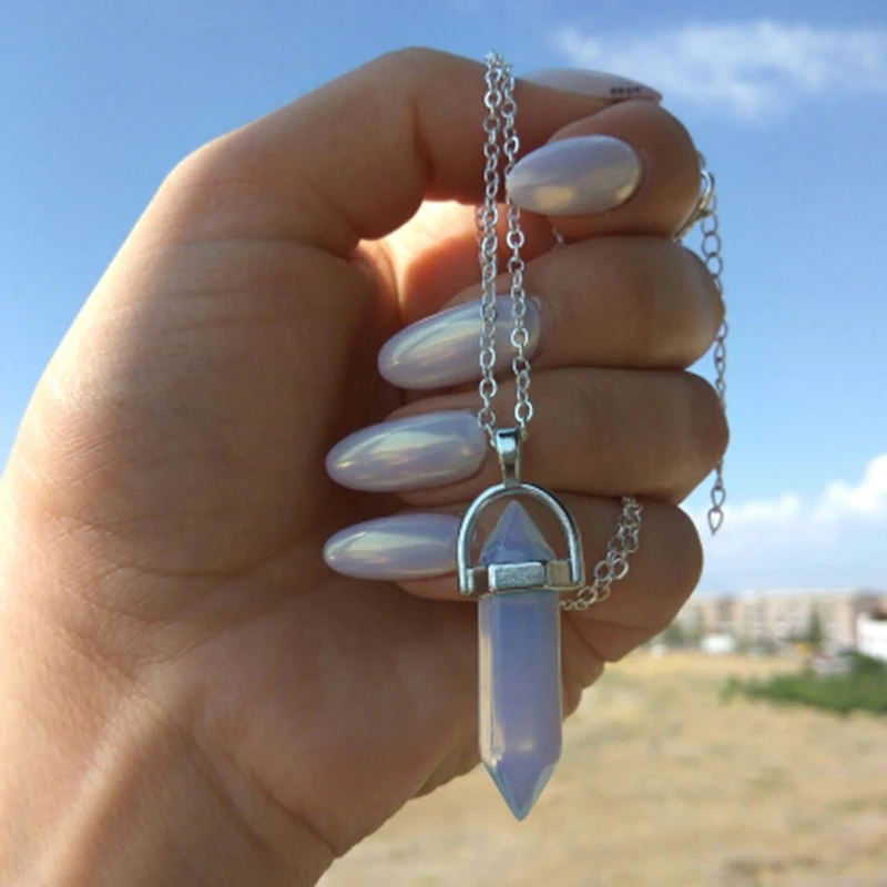 Модное ожерелье из опалового камня с шестигранной колонной, Кварцев...