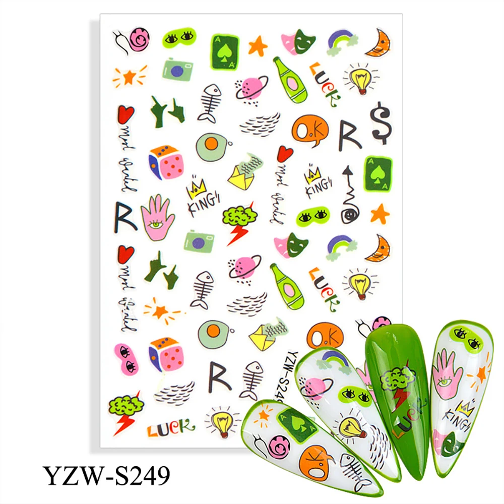 Самоклеящиеся 3D-Наклейки для ногтей, наклейки-слайдеры с надписями...