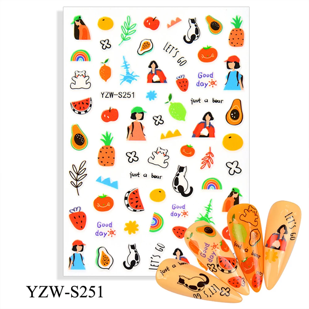 Клейкие 3D наклейки для ногтей в виде фруктов и банановых листьев, ...