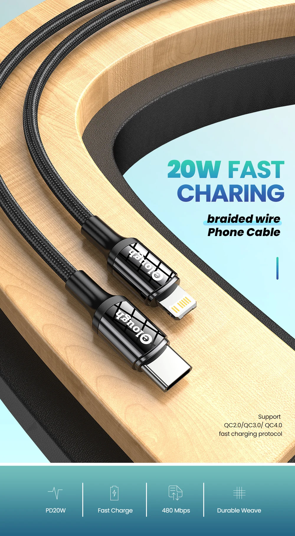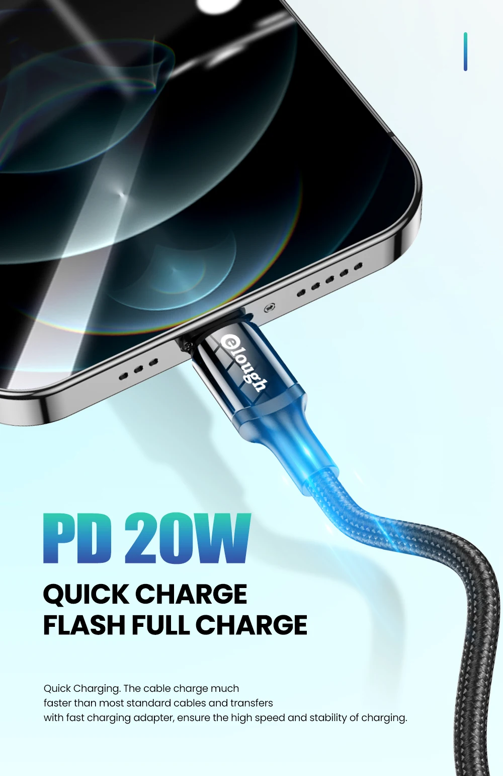 Кабель зарядный Elough с USB Type-C и Lightning, 20 Вт