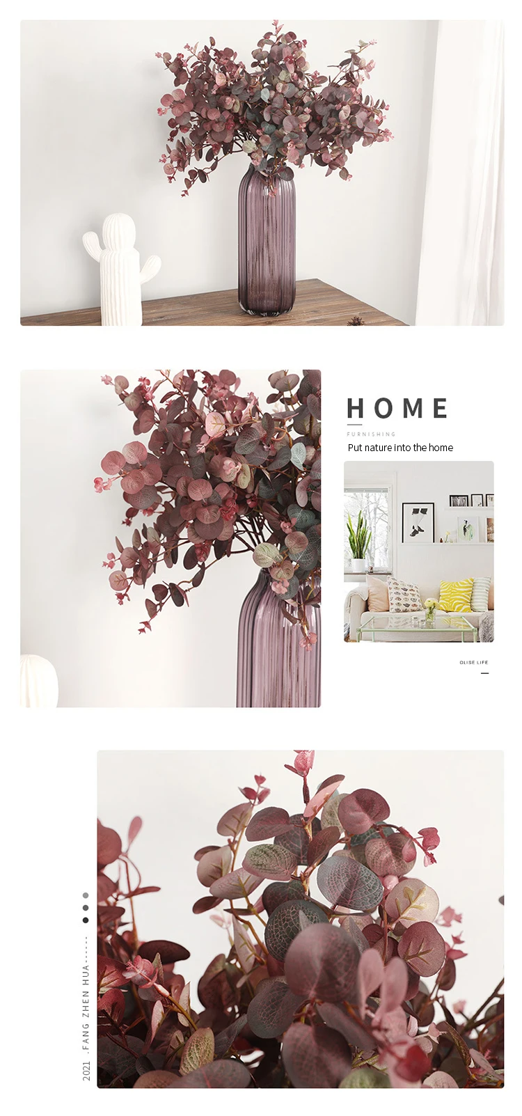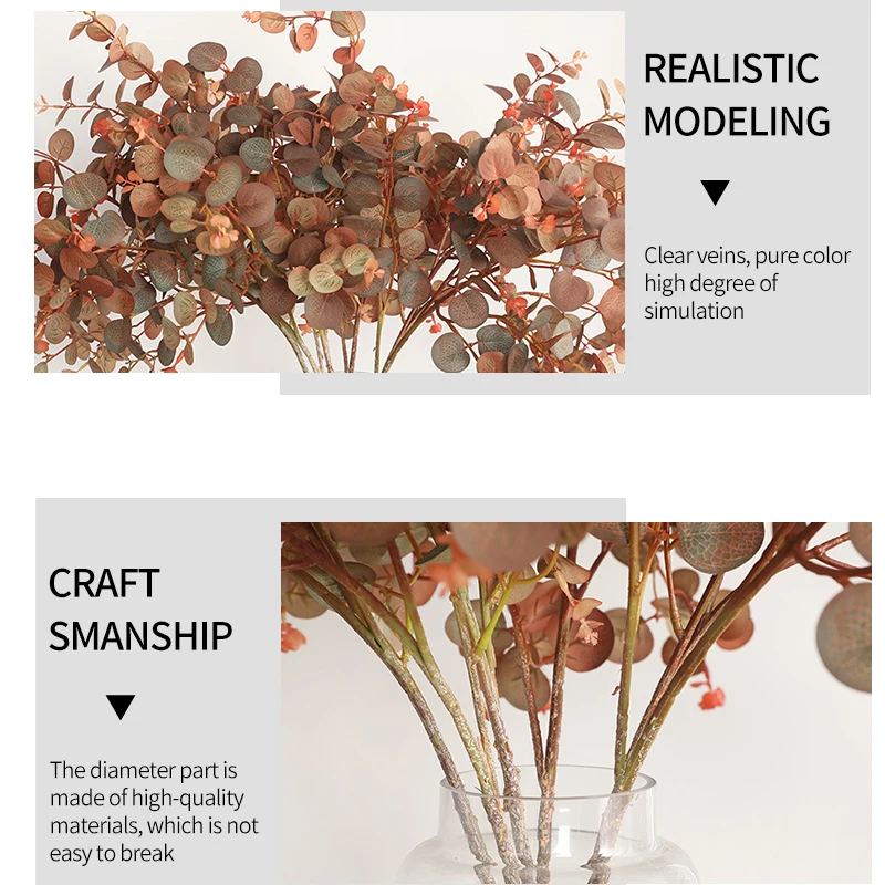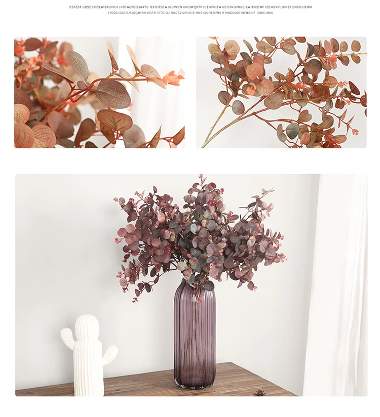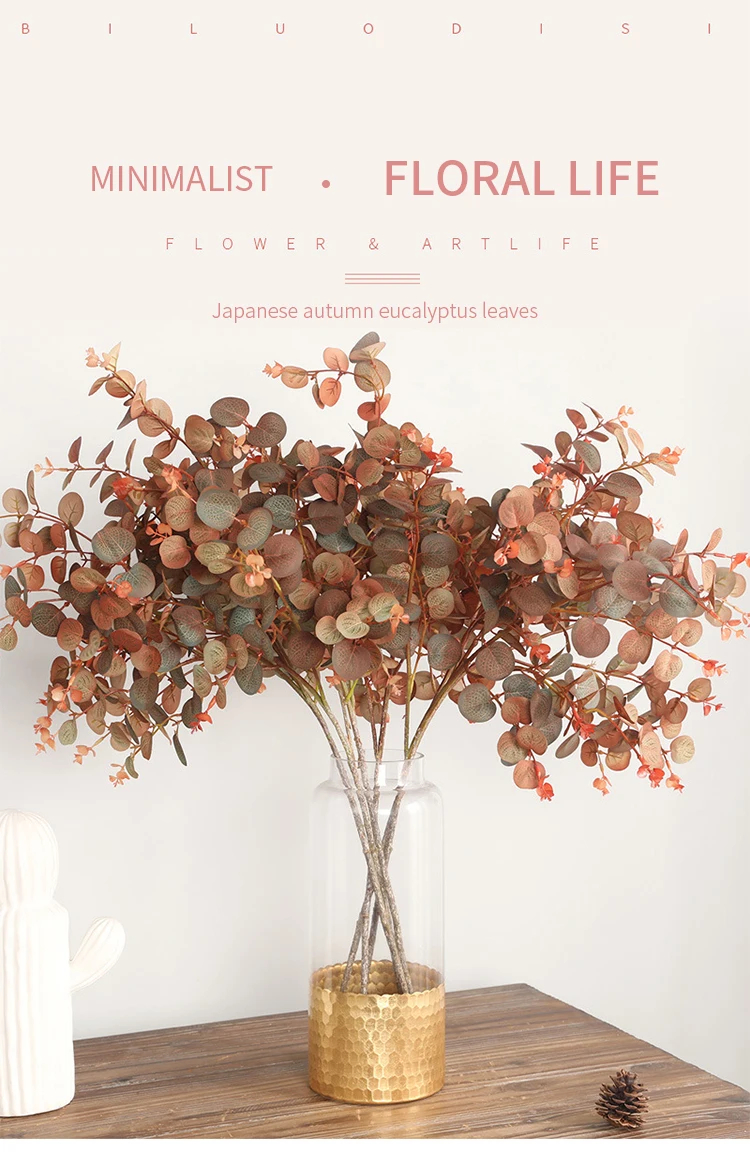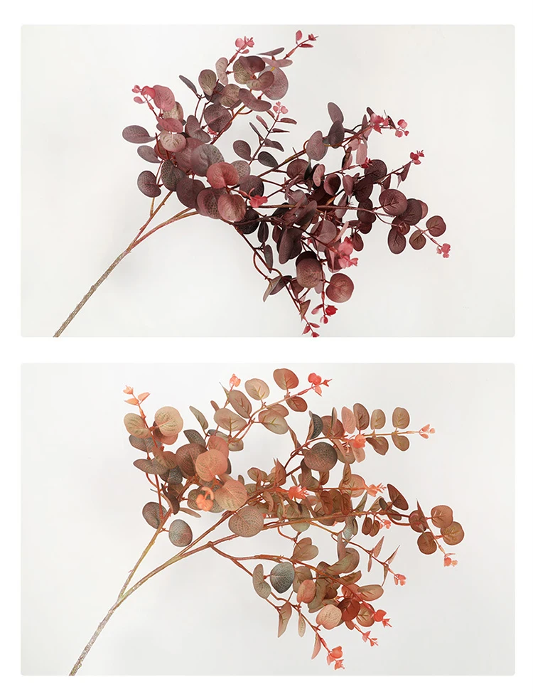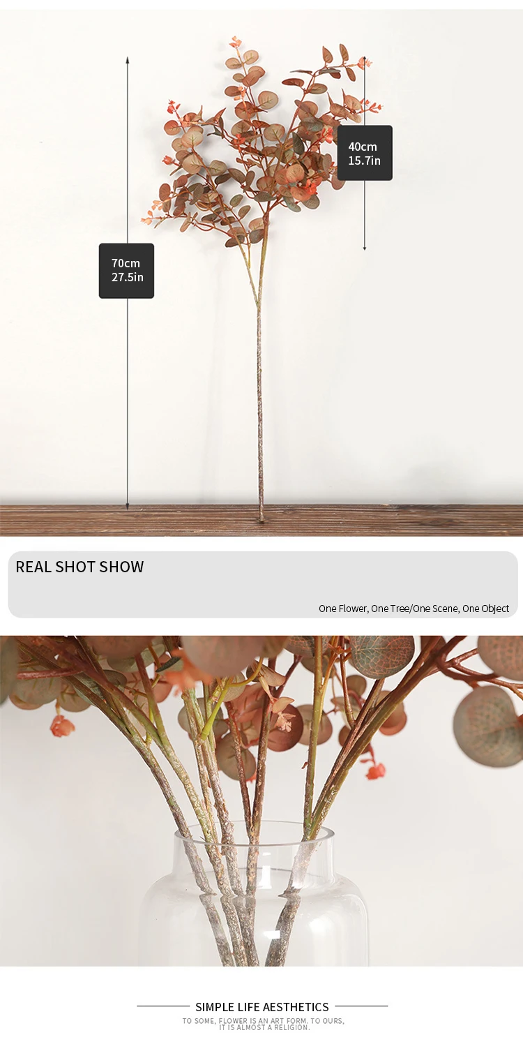 Ретро осенние эвкалиптовые ветки дерева поддельные листовые искусственные растения Украшение дома Свадебные вечерние садовые украшения искусственные цветы