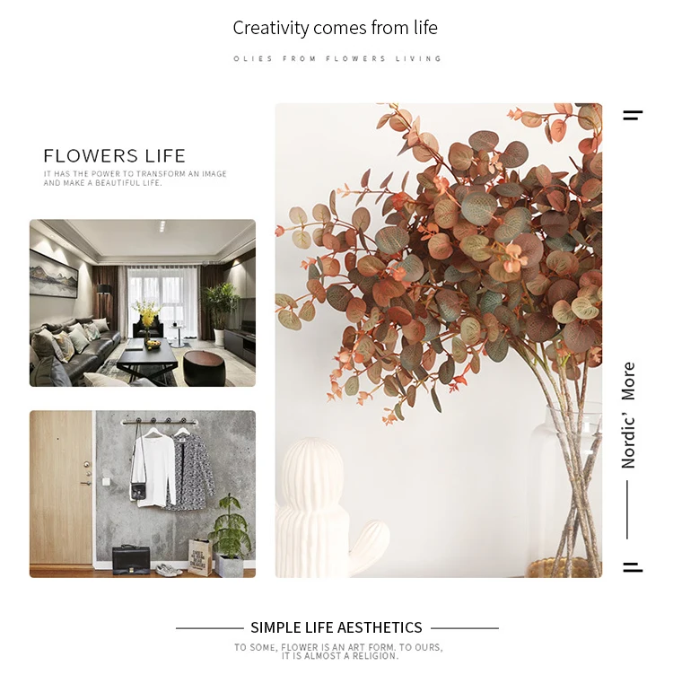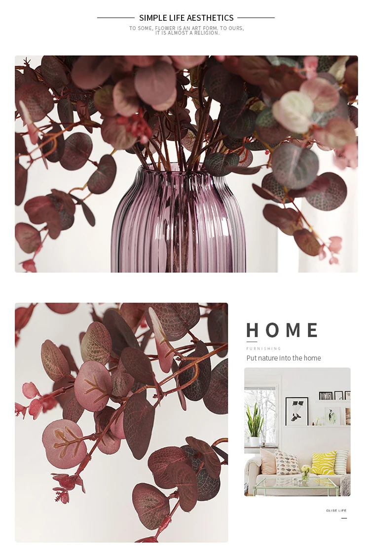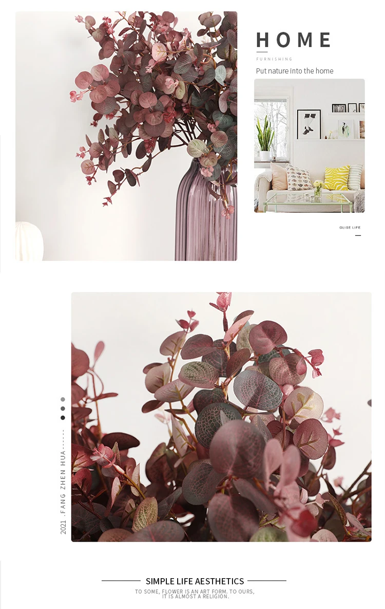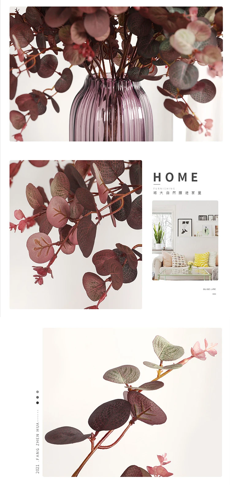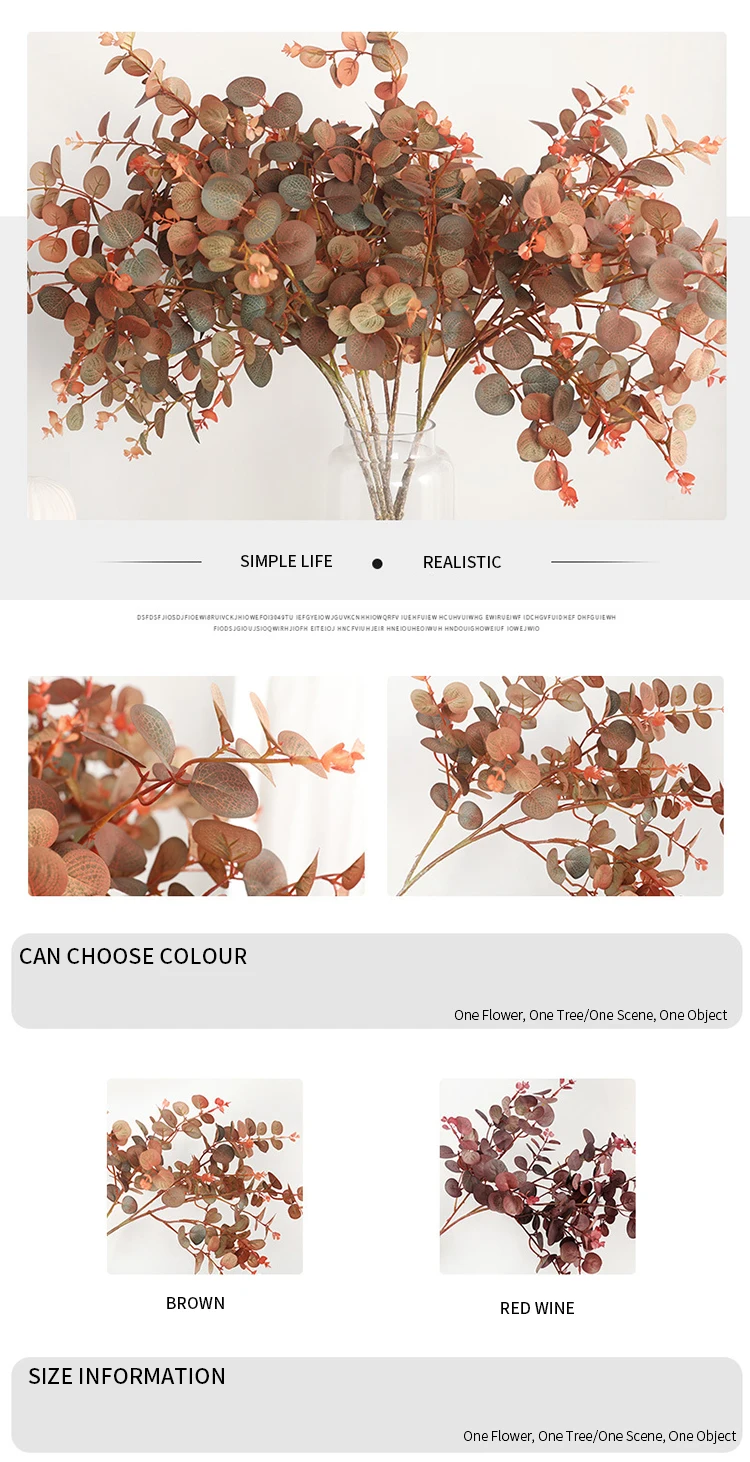 Ретро осенние эвкалиптовые ветки дерева поддельные листовые искусственные растения Украшение дома Свадебные вечерние садовые украшения искусственные цветы