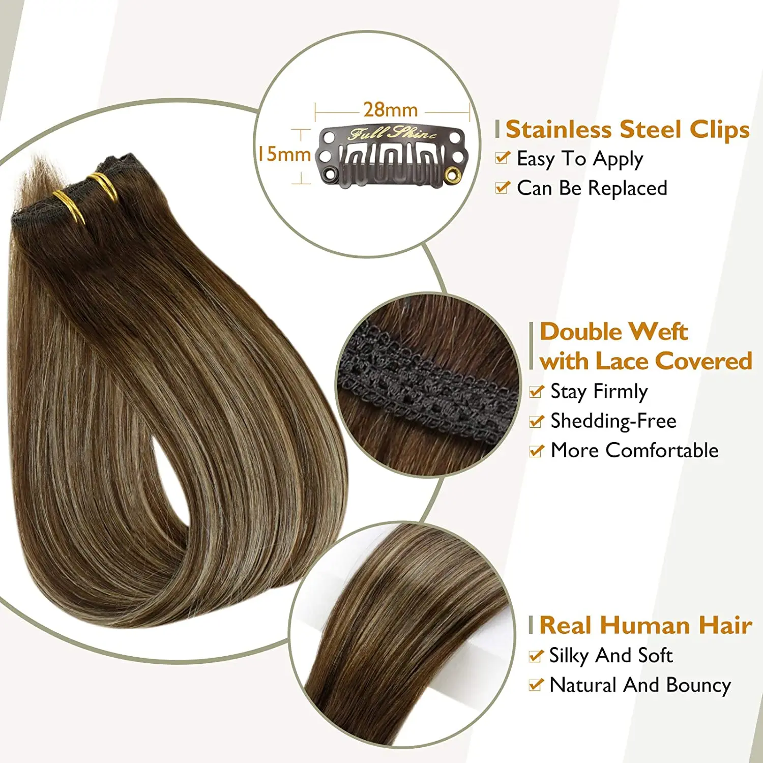 Полный блеск 50 грамм волосы для наращивания на заколках человеческие волосы 50 г 3 шт 100% настоящие Remy человеческие волосы для наращивания Омбре блонд цветные шпильки