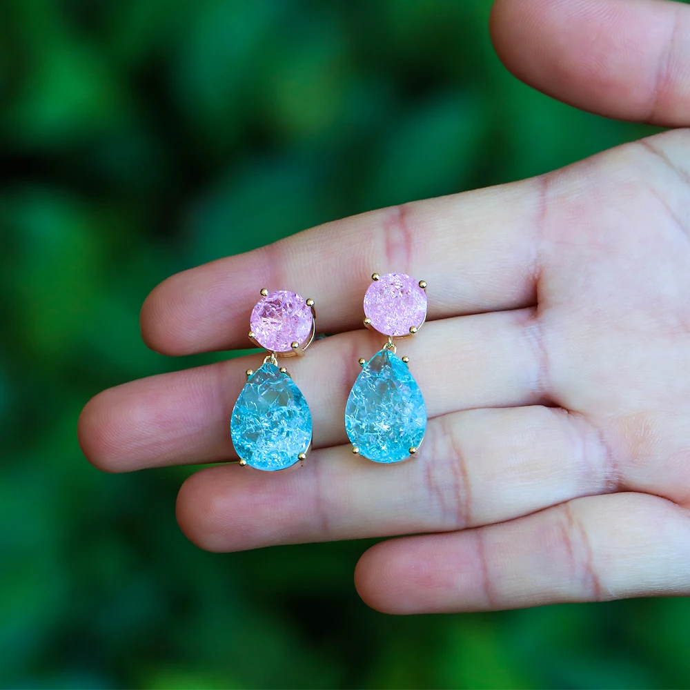 EYIKA Роскошные Большие капли воды синие розовые серьги-капельки из сплава с кристаллами циркониевые серьги женские свадебные ювелирные изделия подарок