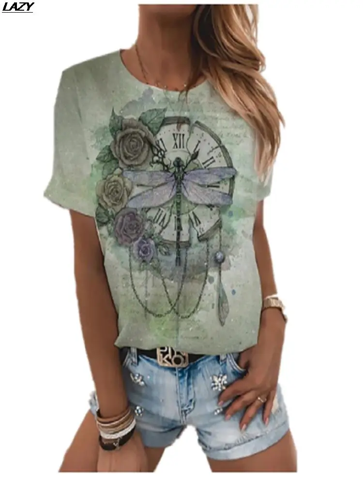 Женская футболка с круглым вырезом, футболка с коротким рукавом в стиле Харадзюку, с крупным цветком, 2021