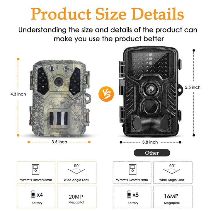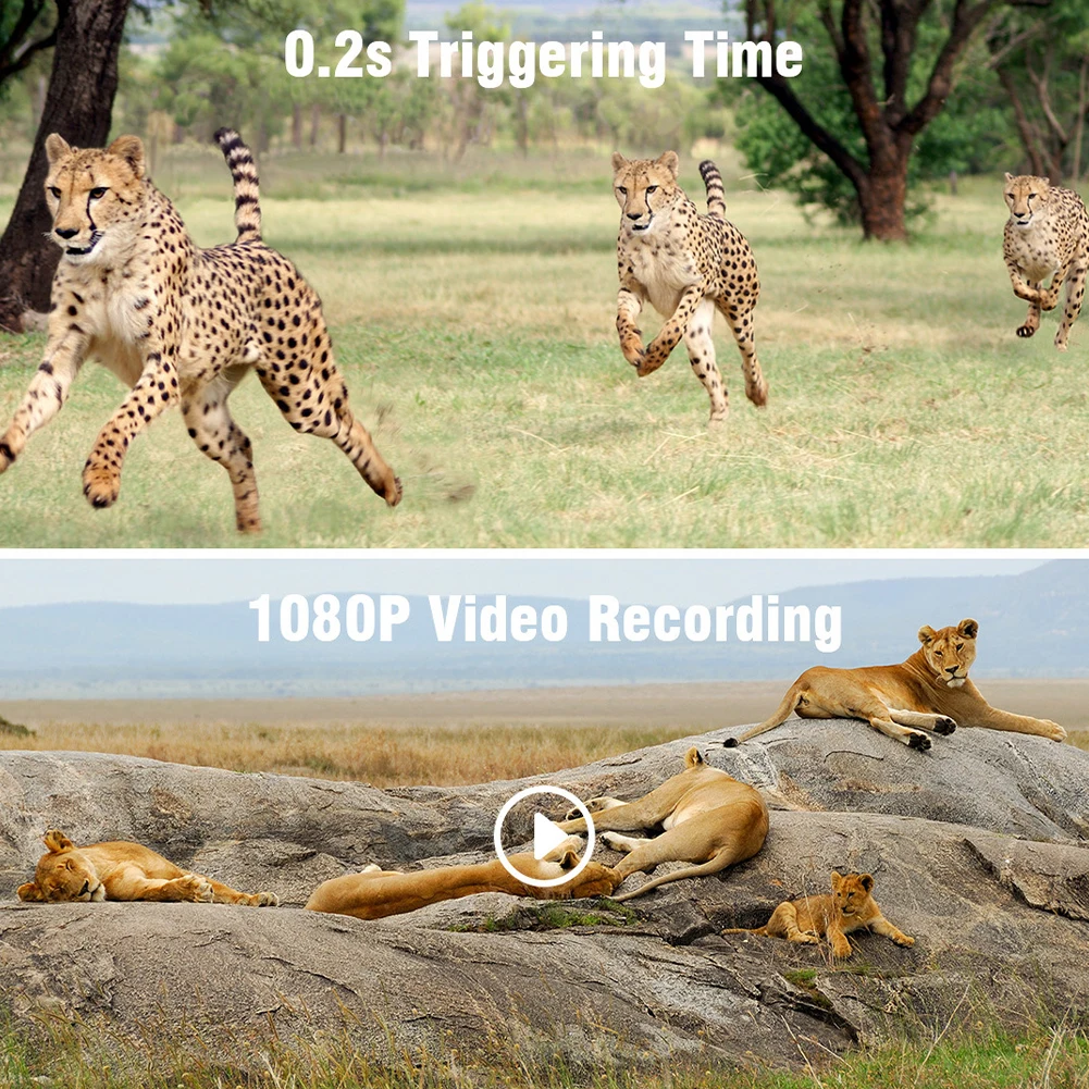 * 1. Разрешение 20MP и разрешение видео FULL HD 1080P обеспечивают кристально четкие и реалистичные изображения и видео, которые позволят вам погрузиться в мир дикой природы, помогая вам лучше понять их повседневную деятельность и привычки в жизни.