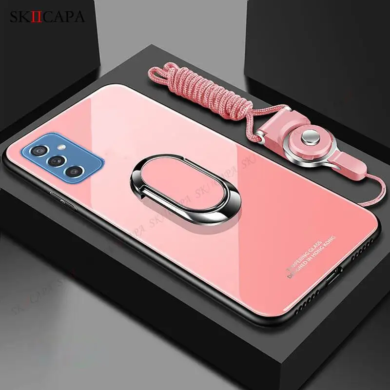 Чехол для телефона Samsung M52 из закаленного стекла для Galaxy M32 4G F62 M62 M51 M31 M31S M30 M30S Магнитный чехол-подставка с ремешком через плечо