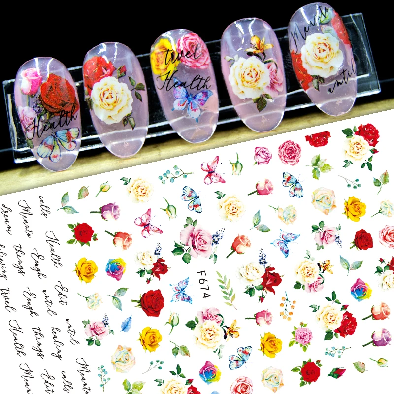Бабочка ногтей наклейки и ретро розы красочная самоклющеяся татуиро...