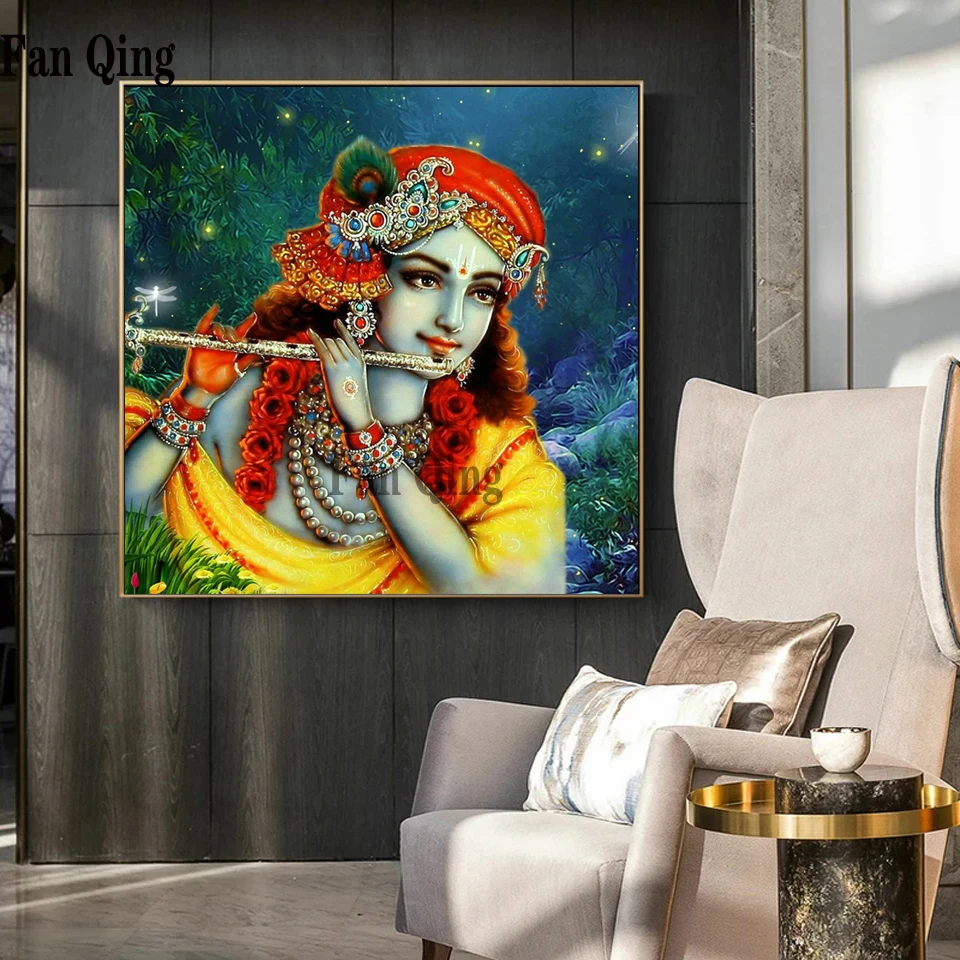 5D DIY Krishna Nada играющая флейта, красивая картина с искусственным бриллиантом, полностью квадратная/круглая Алмазная вышивка, домашний декор