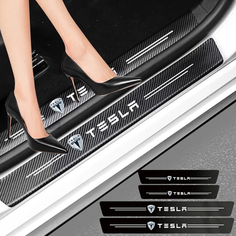 4 шт., наклейки на порог двери автомобиля, из углеродного волокна