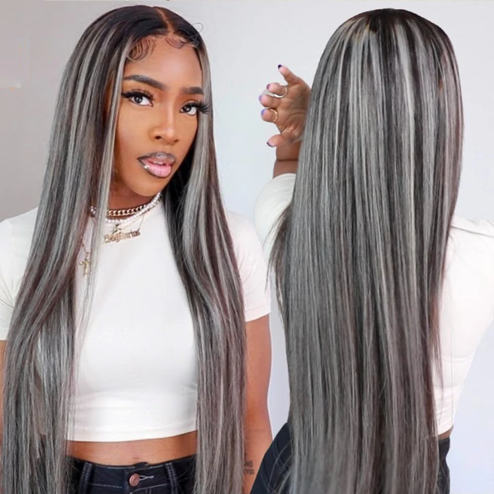 Парик Платиновый Серый прямой на сетке спереди, 30 дюймов, цветные ...