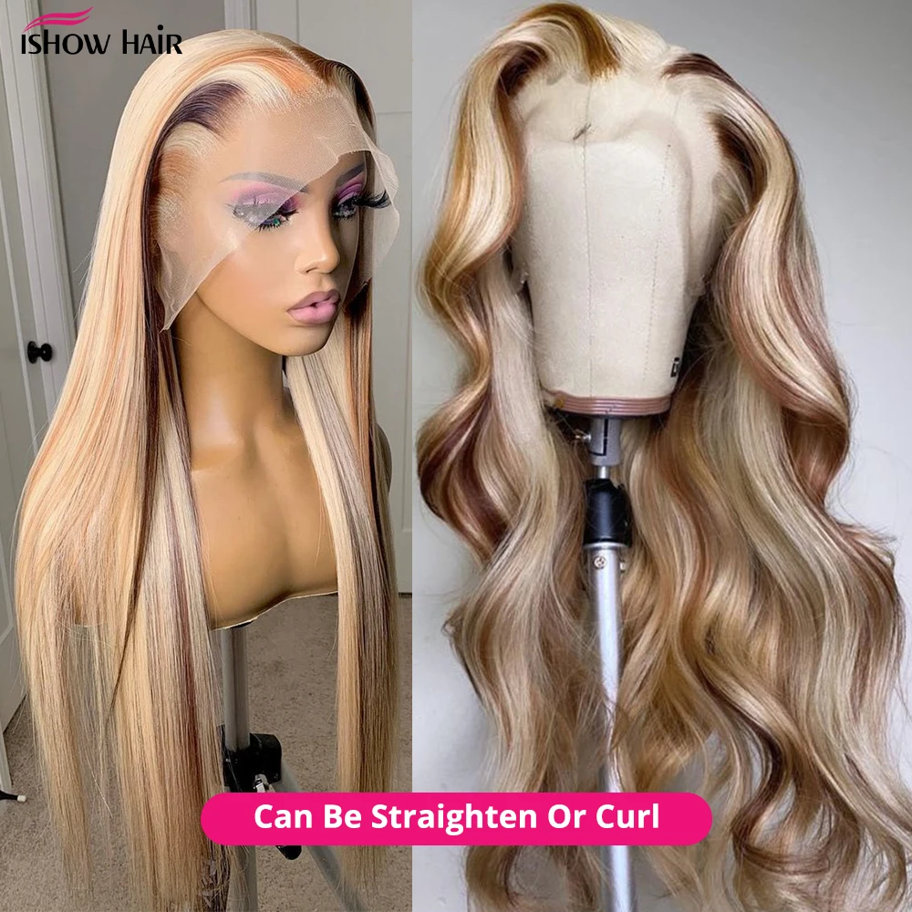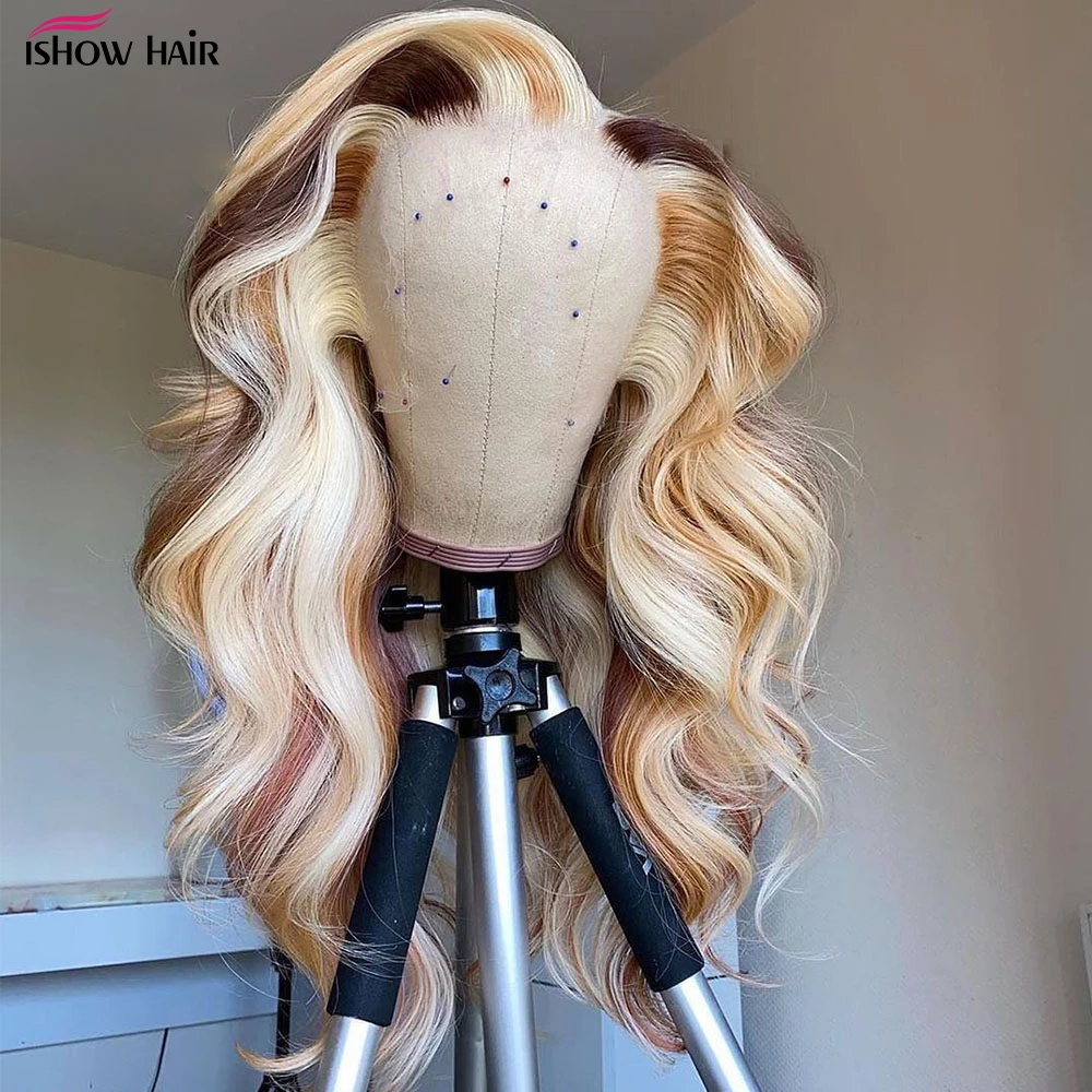 Парик Ishow Блонд 30 дюймов на сетке спереди для женщин, 613 прозра...