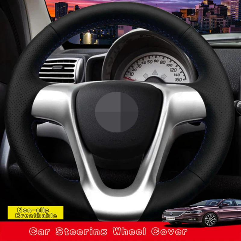 DIY сшитый вручную черный чехол рулевого колеса автомобиля из искус...