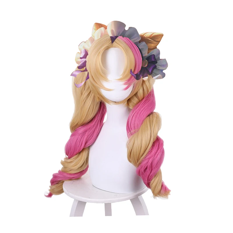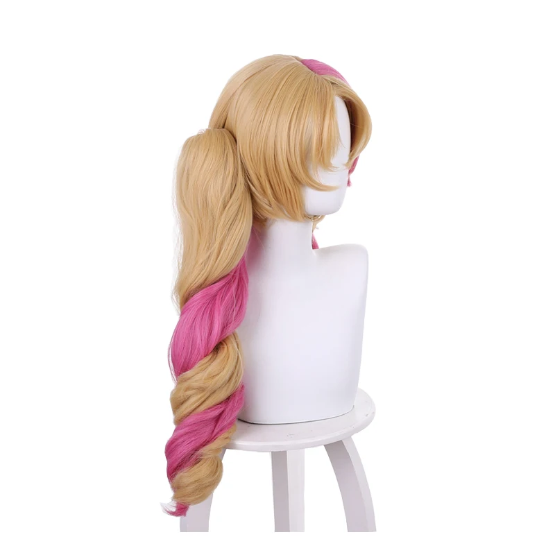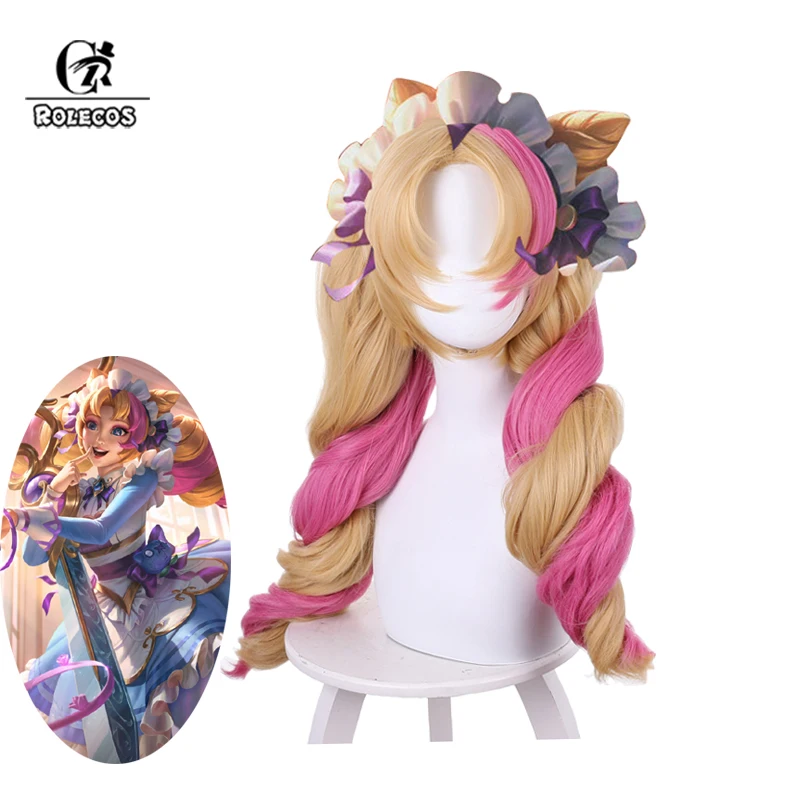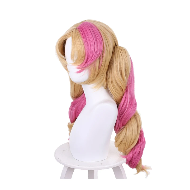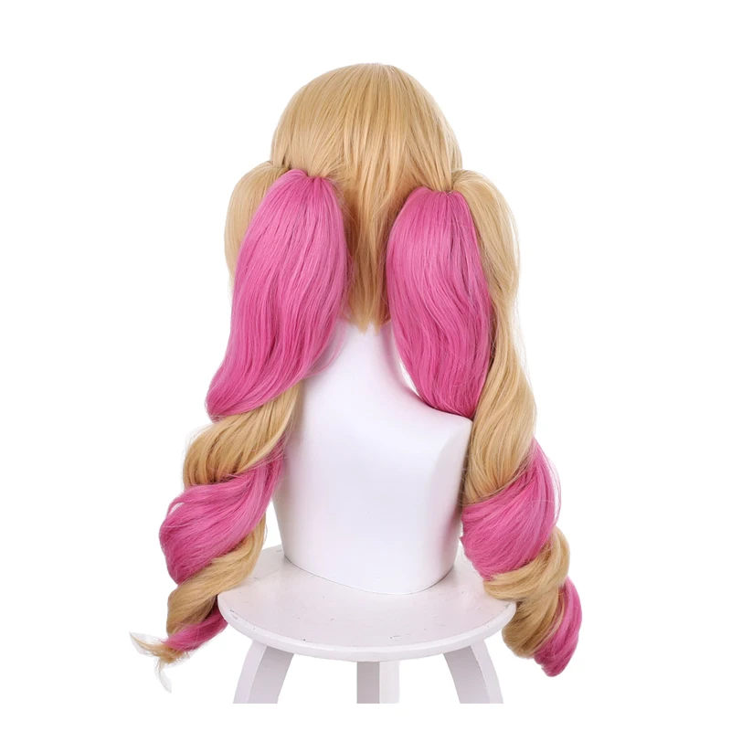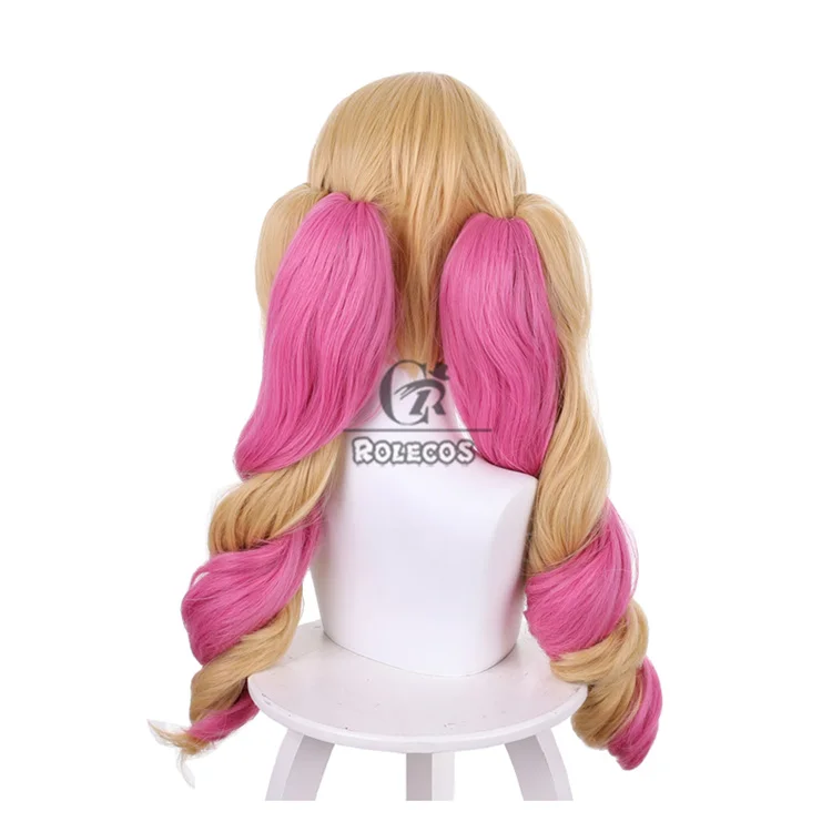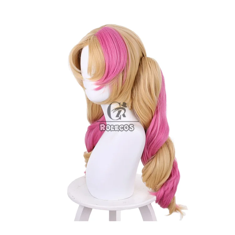 Парик для косплея ROLECOS LOL Gwen, парик для косплея кафе, Cutie Gwen, 50 см, желтый, смешанный, розовый, женский парик, термостойкие синтетические волосы