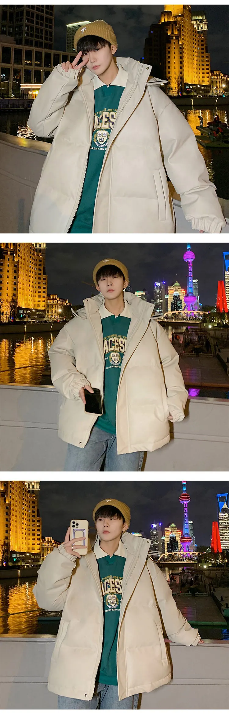 Мужская зимняя пуховая куртка с воротником-стойкой, в стиле Харадзюку