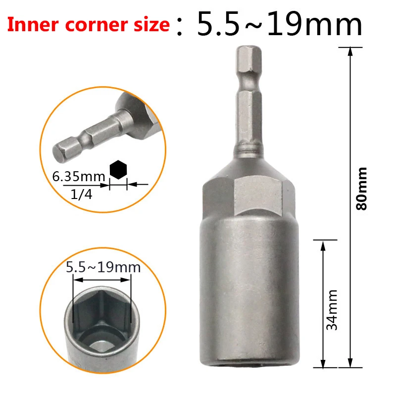 Шестигранная Торцевая головка для электродрели 5,5-19 мм, насадка на шуруповерт, гайковерт, гаечный ключ, 1 шт.