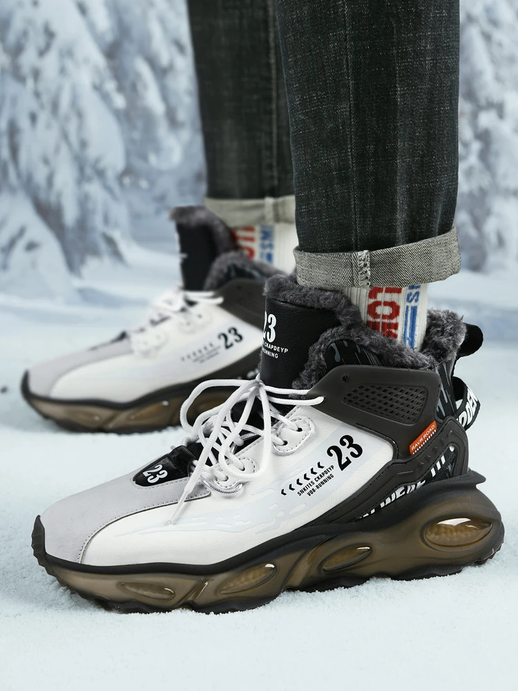 Зимние мужские кроссовки, искусственная кожа, большой размер, искусственная кожа, уличные кроссовки, плюшевые теплые кроссовки, мужские спортивные ботинки