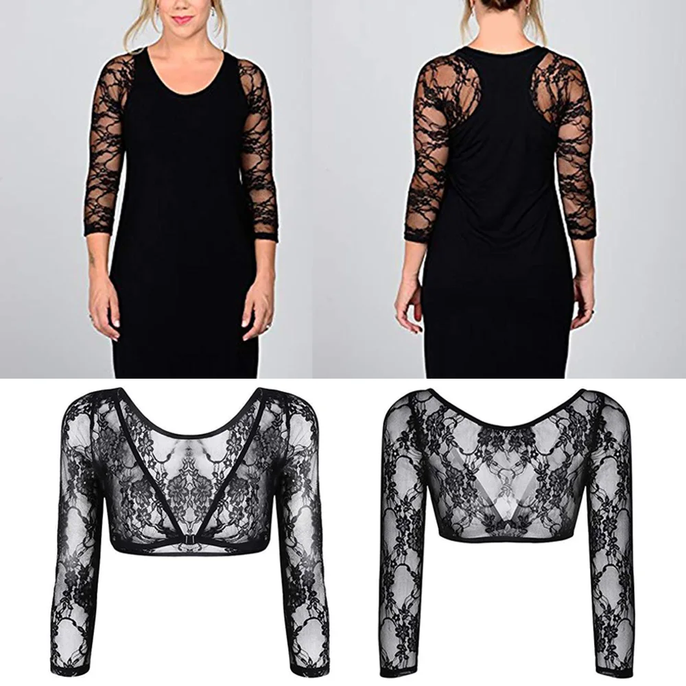 Пикантные женские топы, одежда, винтажное платье с цветочным кружевом и длинным рукавом, женский Болеро, кардиган, облегающий кружевной жакет, топы, прозрачный