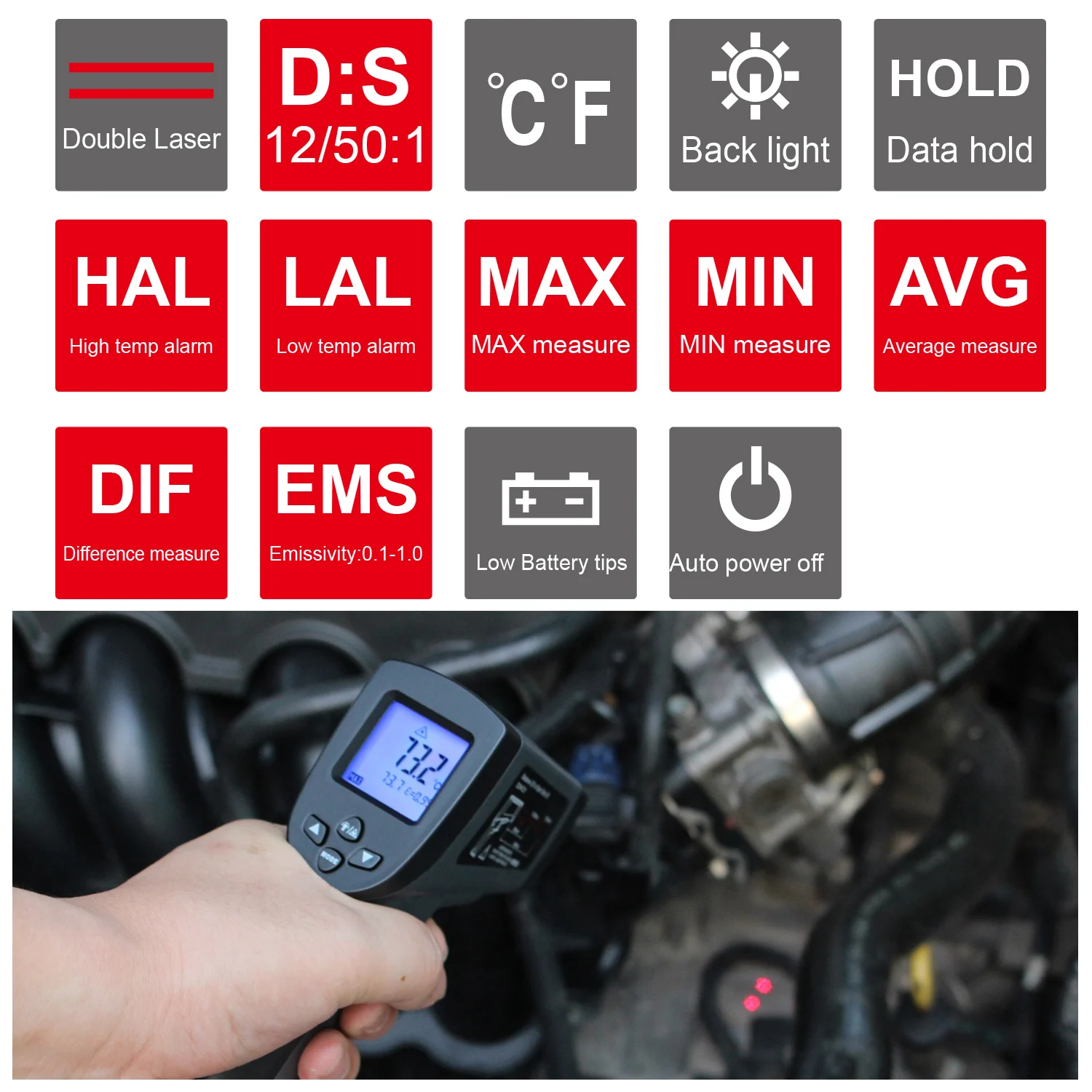 Профессиональный инфракрасный термометр Kaemeasu 50:1 двойной лазер...