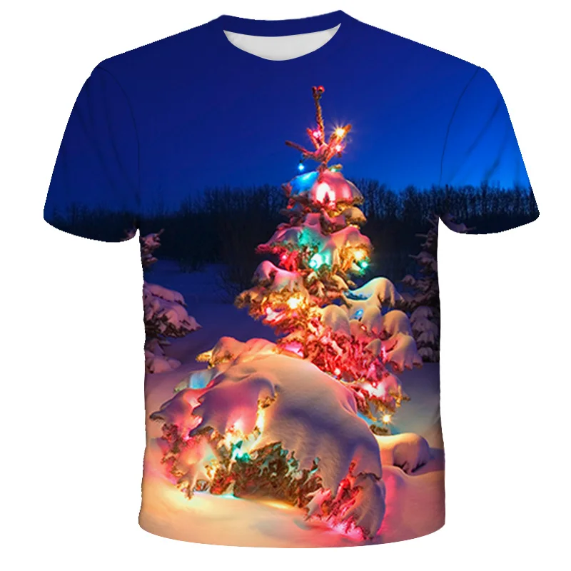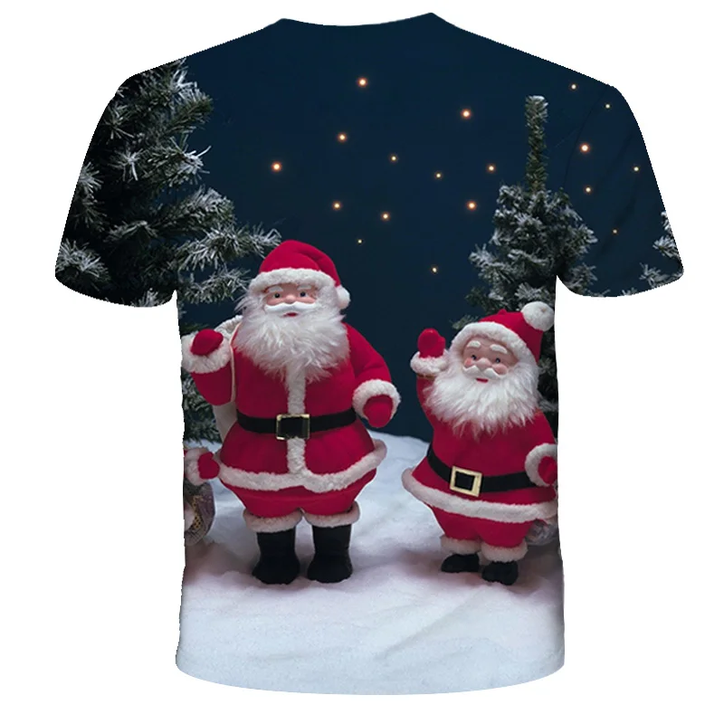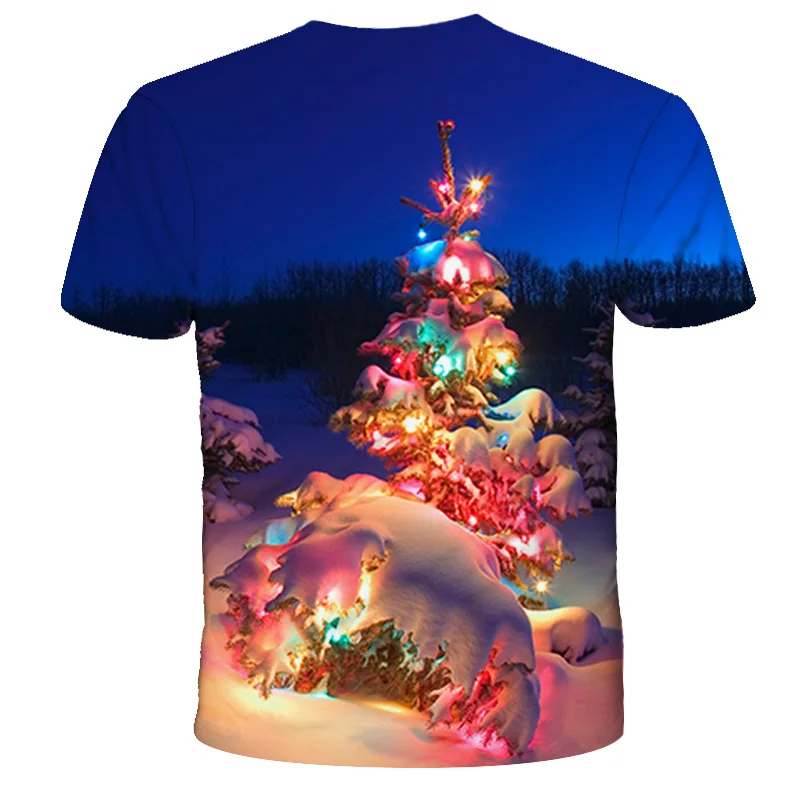 Весенне-летние детские футболки с 3D рисунком Санта-Клауса, рождественской елки для мальчиков и девочек, уличные модные футболки с коротким рукавом
